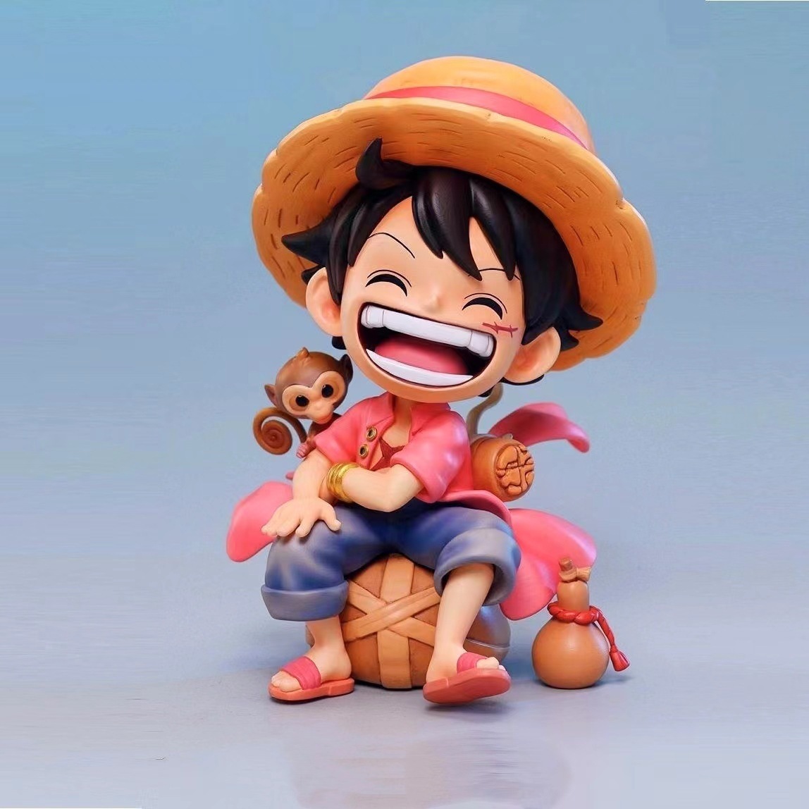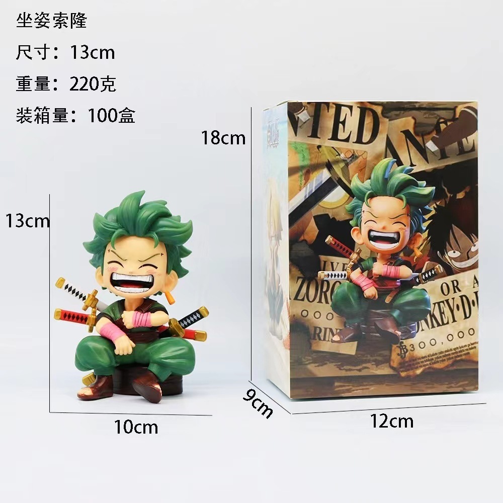 Q版の座る姿ルフィの索隆山治の手は潮を遊んで公仔の模型の車の置物を遊びます