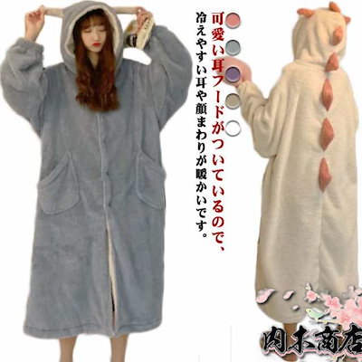 サメ さめ ガウン ルームウェア レディース パジャマ 恐竜 着ぐるみ 厚め ボア ふわふわ 寝巻 冬 もこもこ あったか 着る毛布 保温 ナイトウェア 可愛い 膝丈 ふんわり 無地 部屋着 暖かい