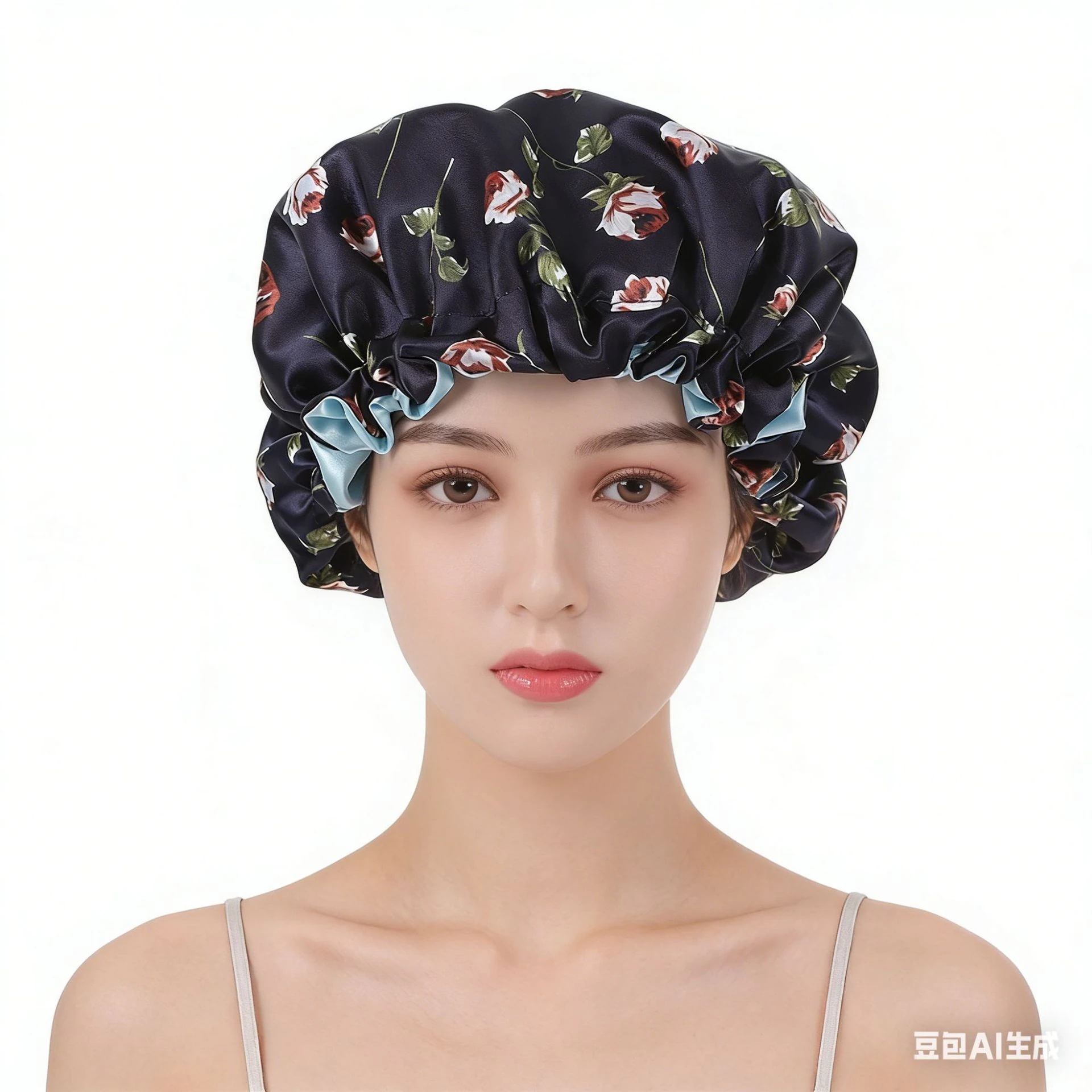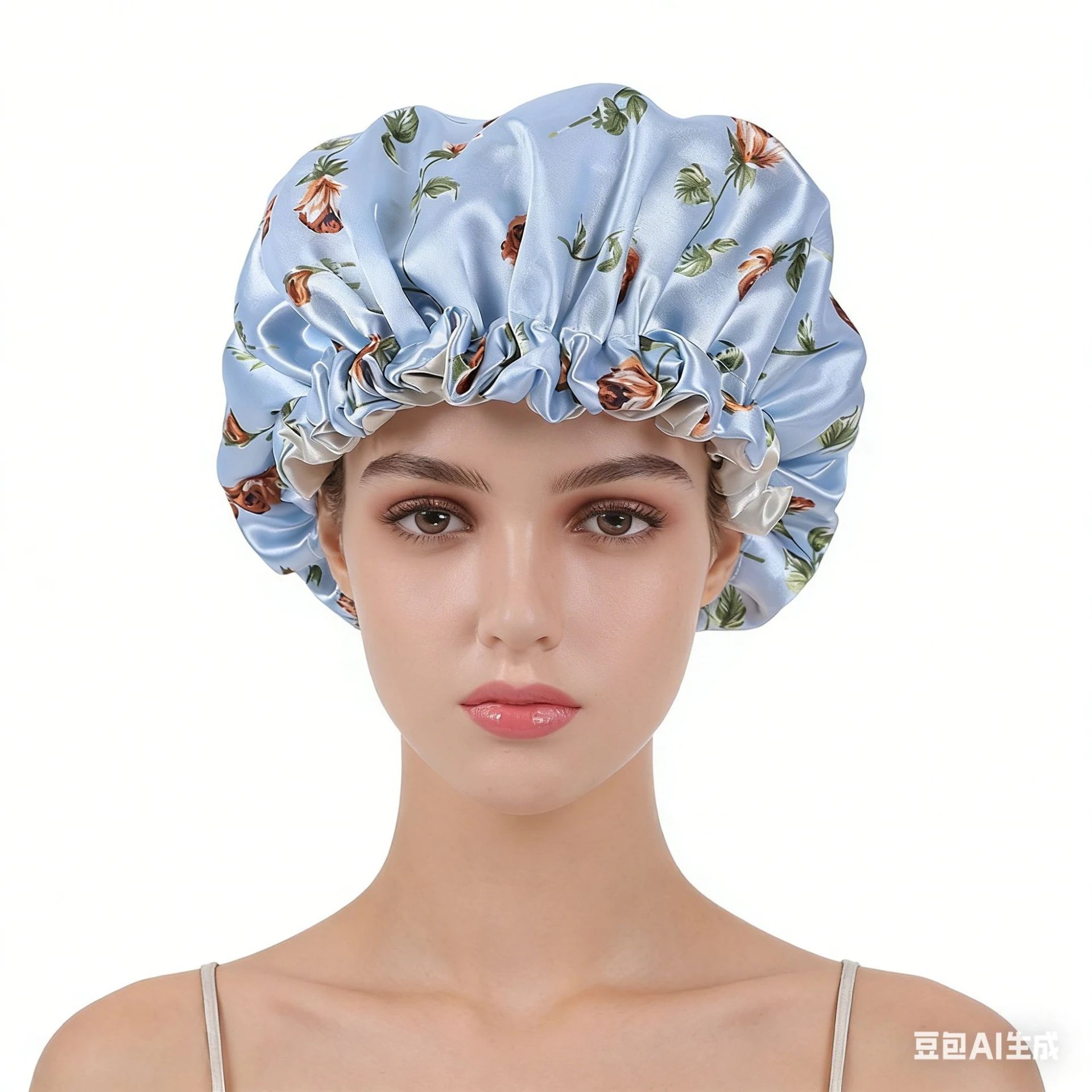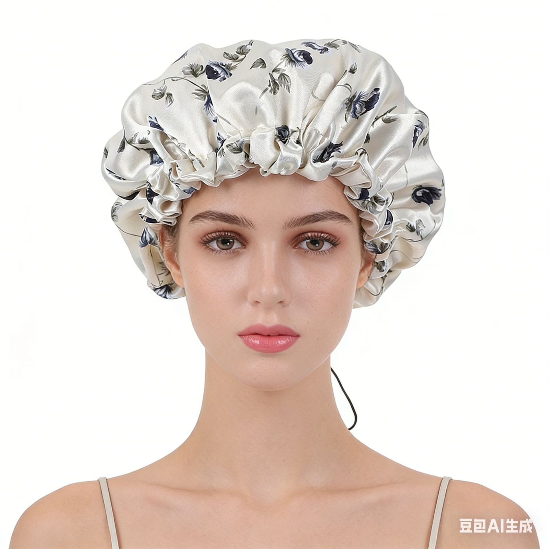 【3日出荷】二重構造調整可能プリントヘアキャップ 家庭用 大きいサイズ両面着用モデル シルク ナイトキャップ