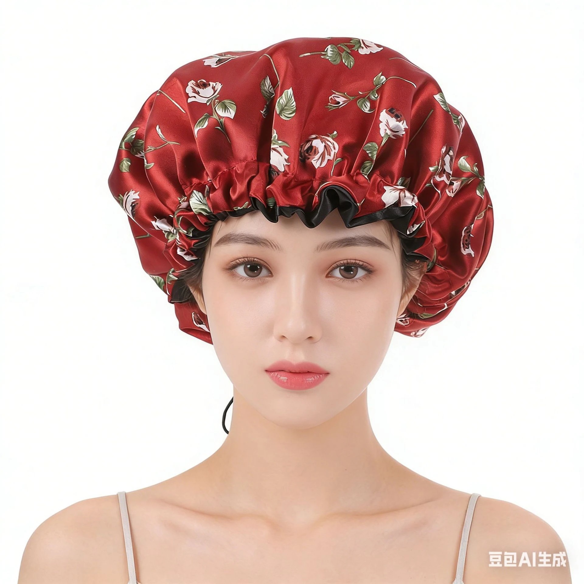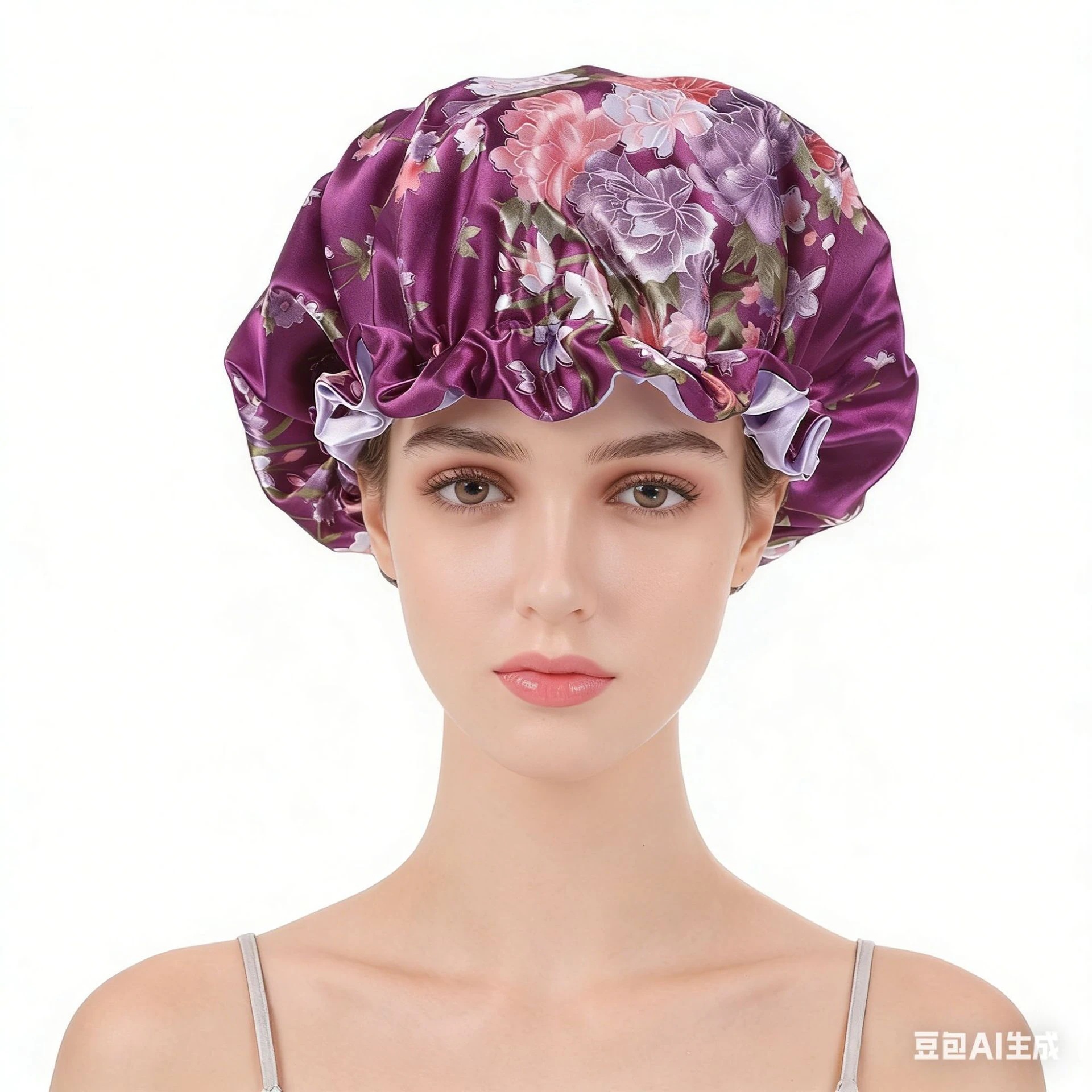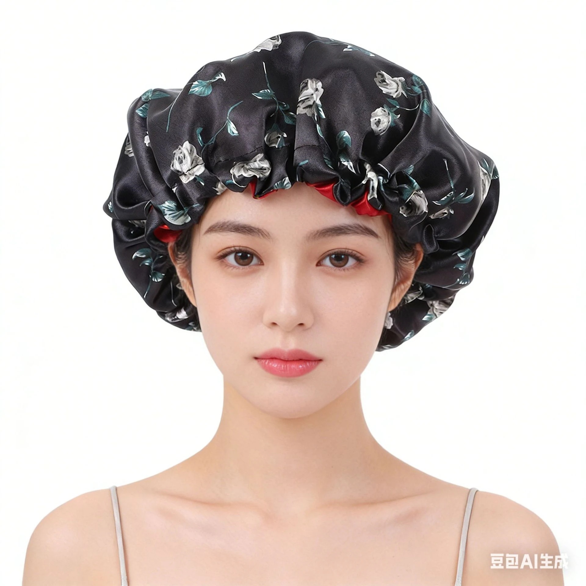 【3日出荷】二重構造調整可能プリントヘアキャップ 家庭用 大きいサイズ両面着用モデル シルク ナイトキャップ