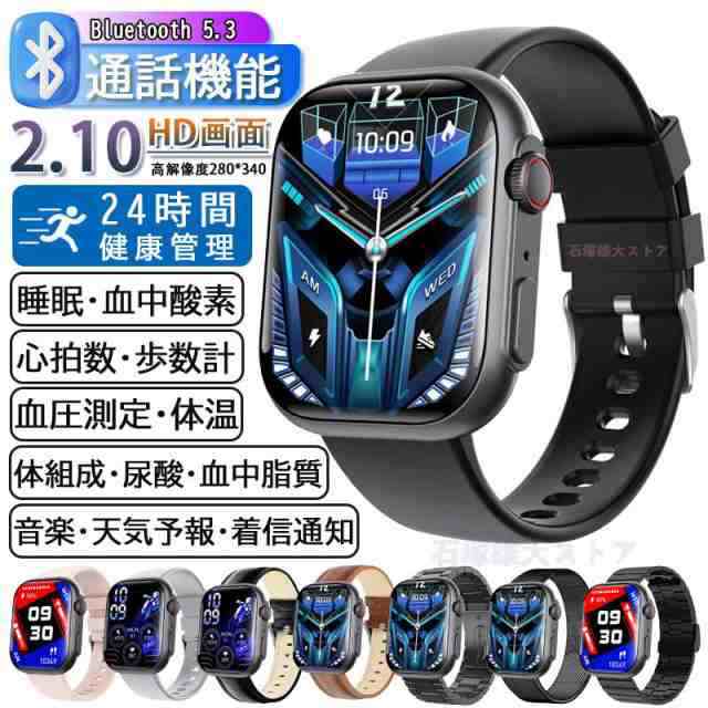 スマートウォッチ 血糖 日本製センサー血圧測定 通話機能 LINE通知 酸素濃度 女性健康管理 体温 睡眠 歩数 呼吸訓練 天気 音楽再生 カメラ制御 多種類運動モード