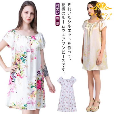 シルク パジャマ ワンピース ルームウェア 半袖 レディース ワンピース 夏 シルクパジャマ ルームワンピース 花柄 半袖パジャマ ネグリジェ 寝巻 部屋着 ナイトウエア ママ プレゼント 母の日