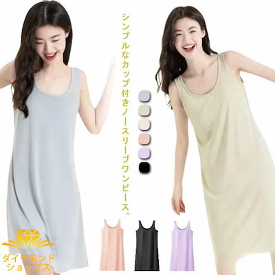 カップ付き ワンピース ノースリーブ パジャマ ワンピース カップ付き スリップ 透け防止 インナー キャミソール ペチワンピ 部屋着 ロング丈 ルームウェア 春 夏 年中使える 涼しい インナー ゆ