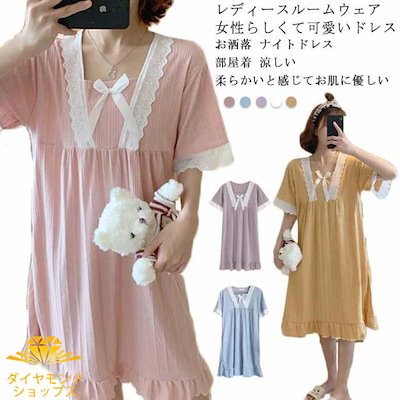 レディースパジャマ ルームウェア ナイトドレス ワンピースパジャマ 涼しい ドレスパジャマ 部屋着 ゆったり 可愛い 綿ドレス 寝巻き ワンピース 春夏秋冬 柔らかい 軽い 寝間着
