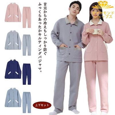 綿 ニットキルト あったか 前開き 長袖パジャマ ハイネック レディース メンズ キルトパジャマ 厚手 秋冬 部屋着 ルームウェア パジャマ上下セット 肌に優しい 暖かい 中綿 キルティング 寝間着