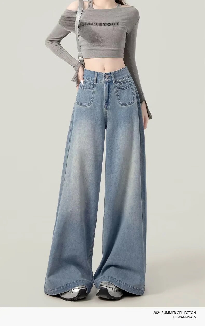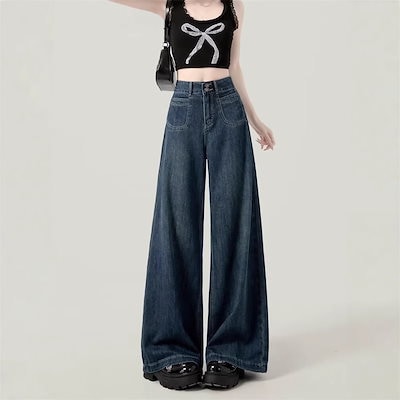 レディースデニムパンツ シンプル トレンド ファッション 原宿スタイル 新作ワイドパンツ