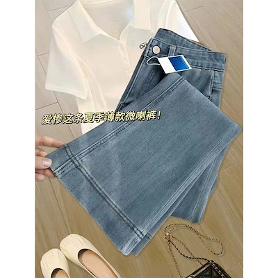 レディースジーンズ ストレッチ素材 秋冬新作 プラスサイズ ハイウエスト シルエット ストレートシルエット 細身効果 ワイドパンツ
