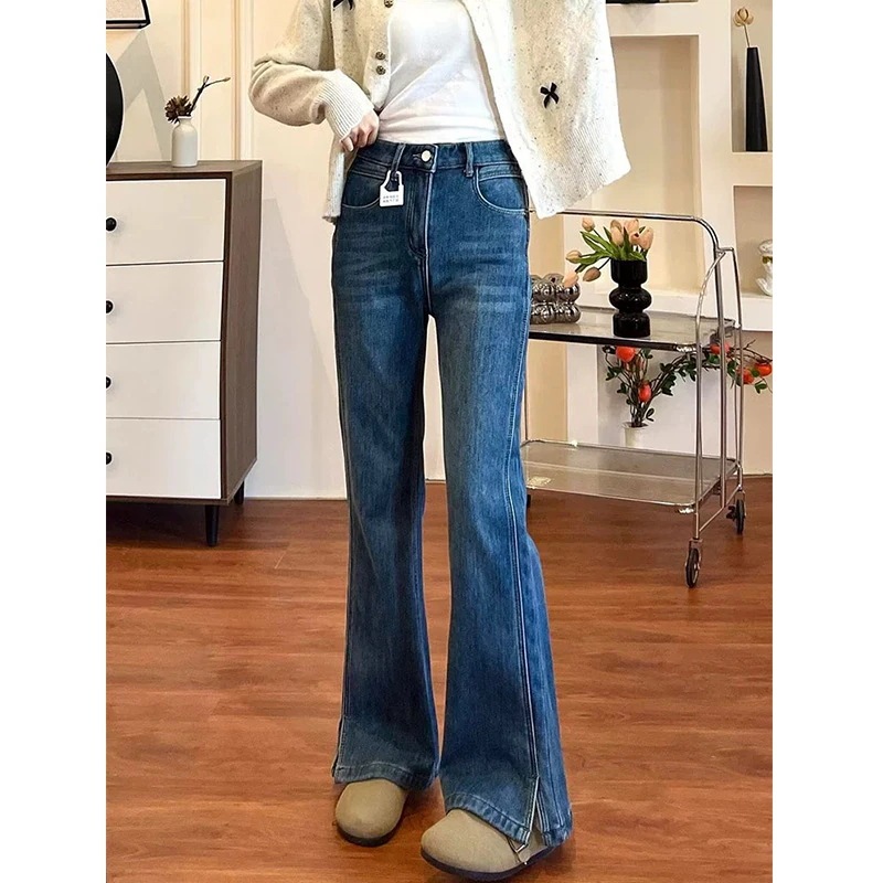 レディースデニムパンツ 秋冬モデル セクシーハイウエスト ゆったりフィット 体型にフィット プラスサイズロングパンツ