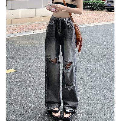 レディースジーンズ レトロ 秋冬新作 ハイウエストスリムフィット プラスサイズゆったりフィット ロングパンツ ストレートパンツ