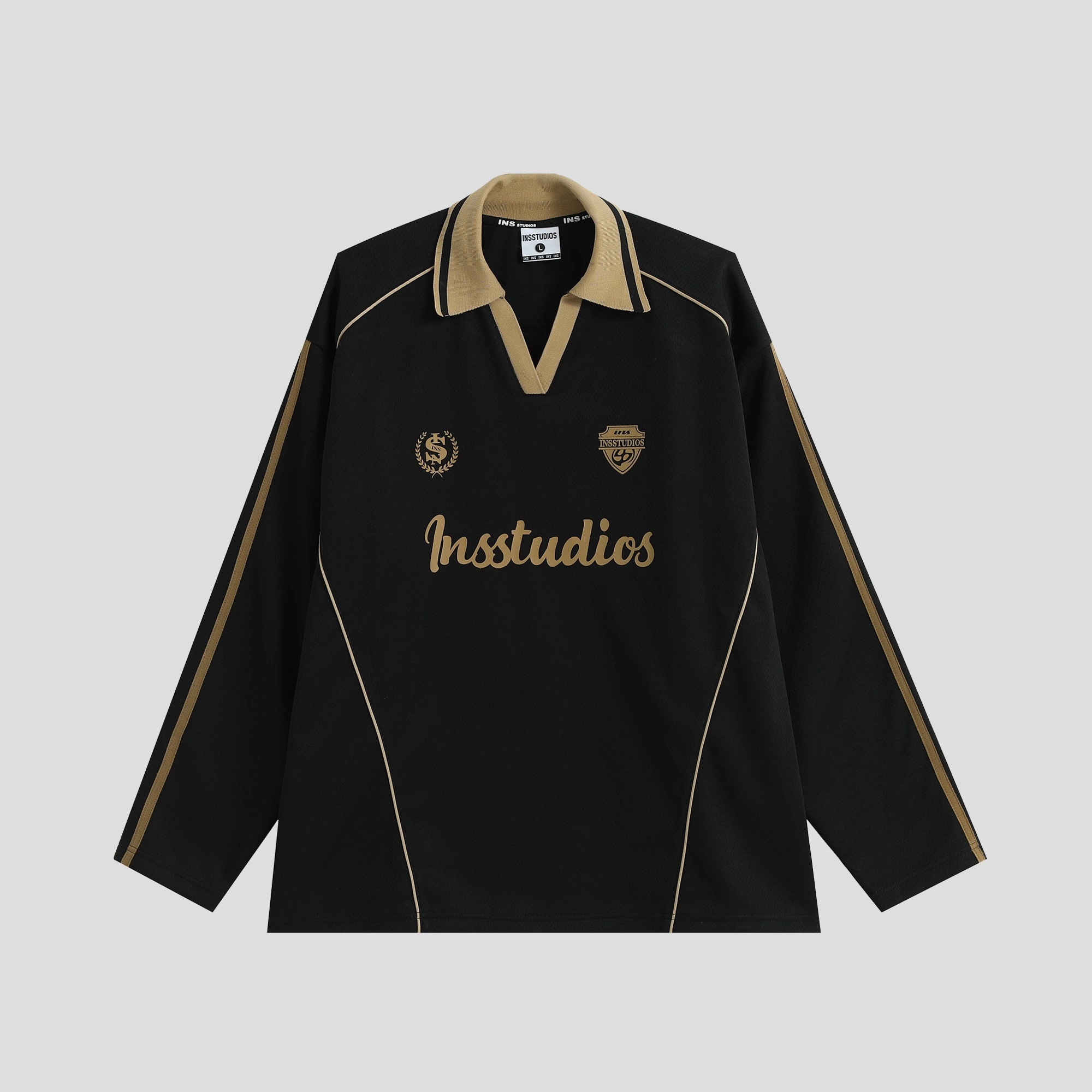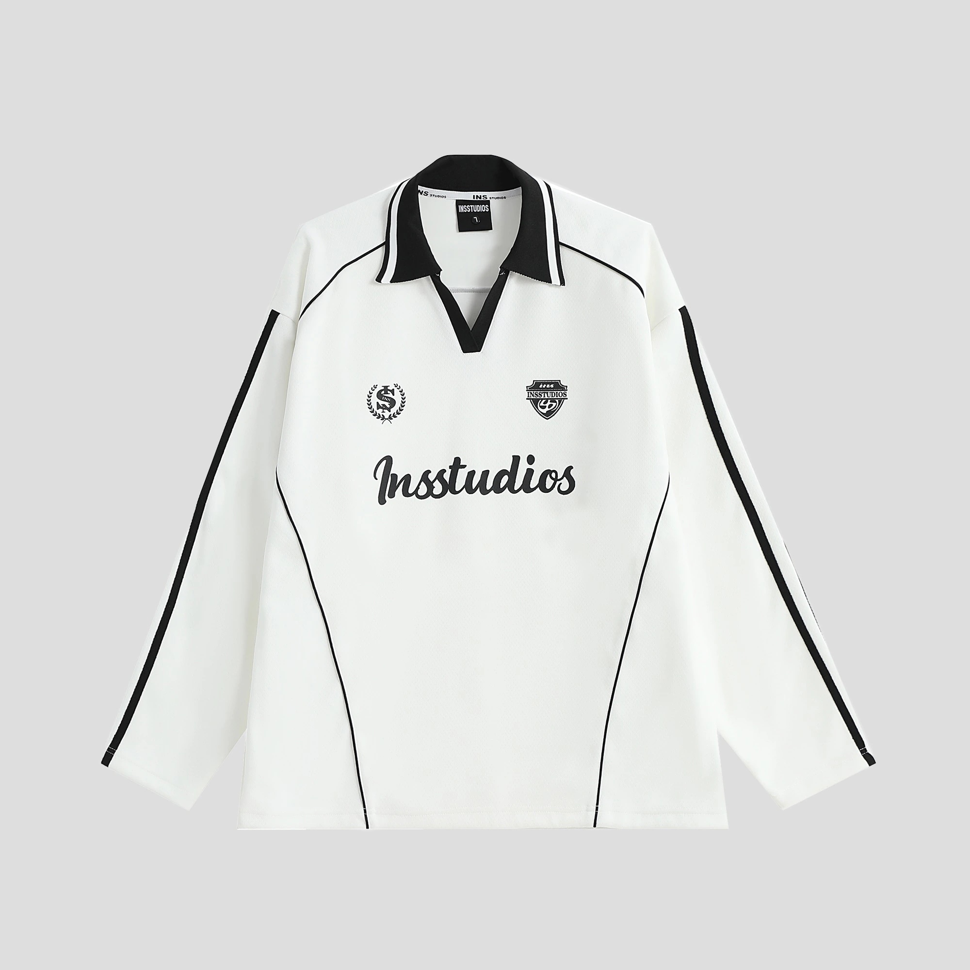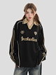 2025秋冬 トップスバイカラー長袖TシャツかわいいVネックK-POP黑白レディース韓国風ロゴルーズゆったりカジュアルおしゃれサイズ袖グラフィックシルエットファッション系サイドシャツフット春スポーツT