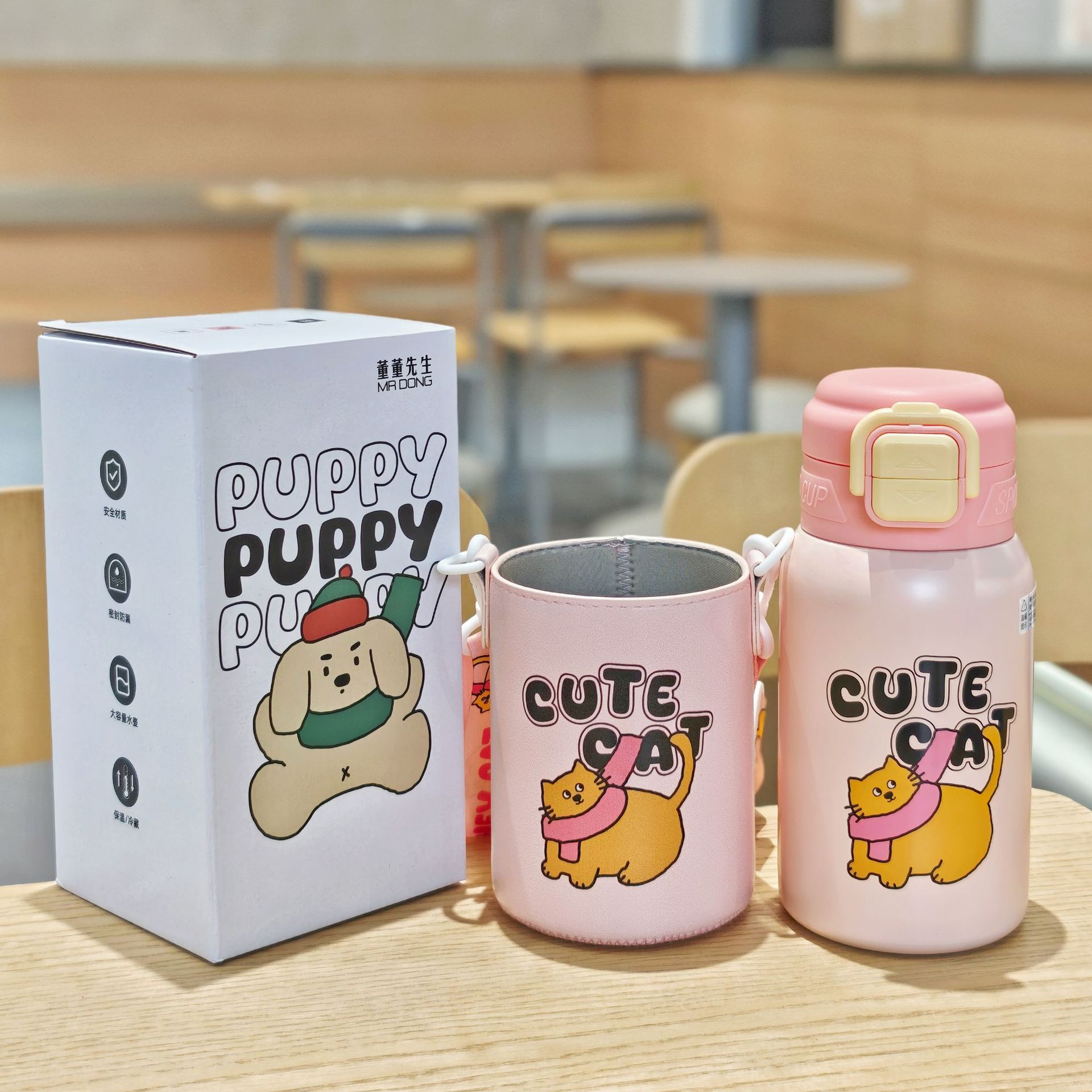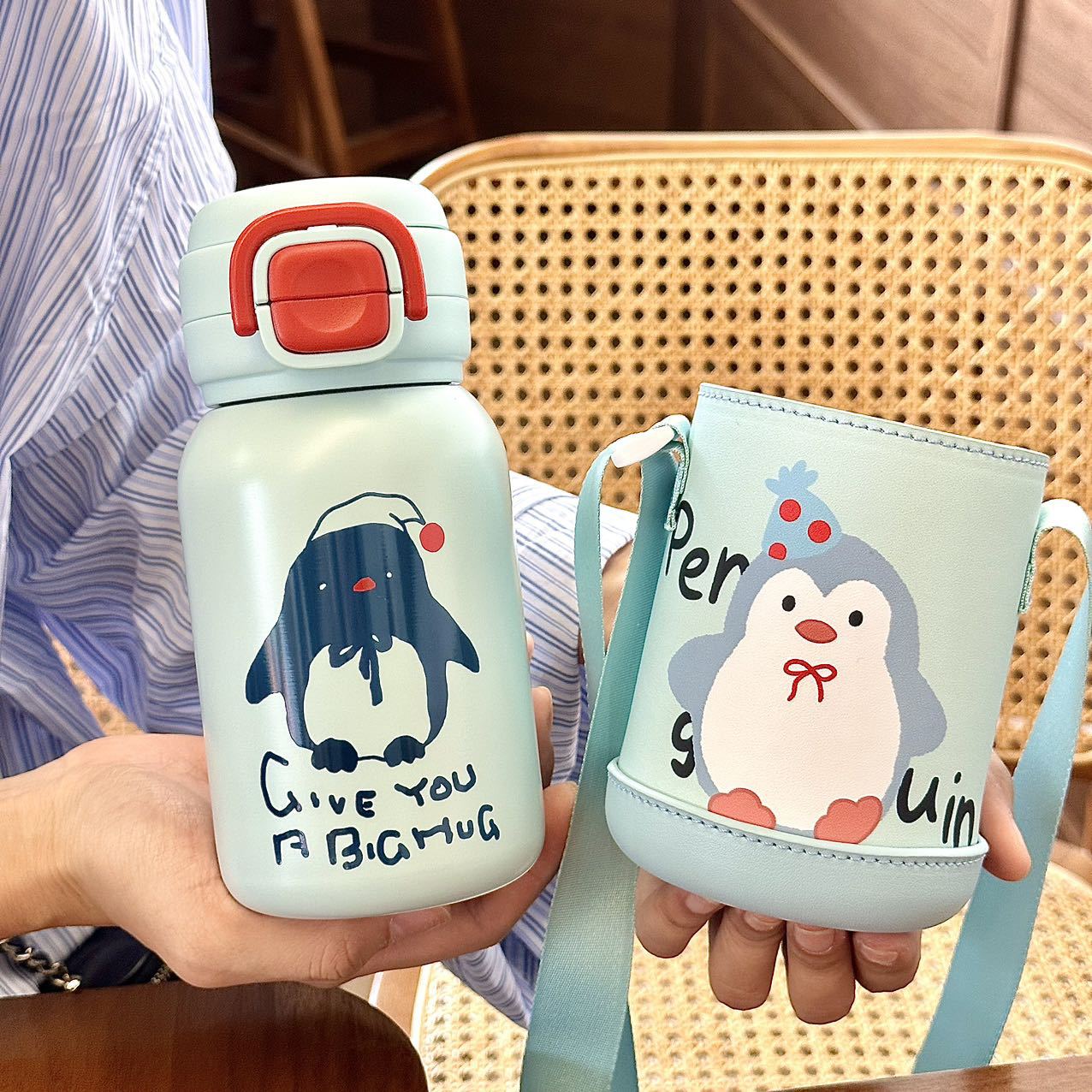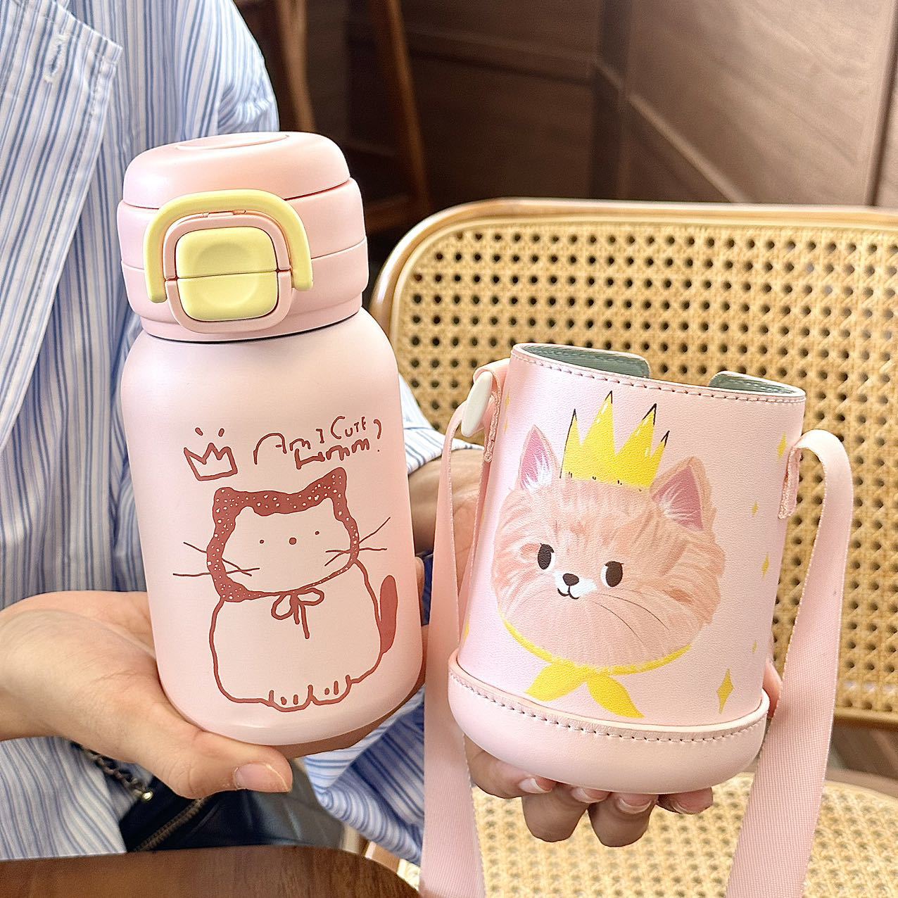 新入荷!かわいい子供用保温カップ ケース付落下防止ストロー付き二重飲用真空カップ プレゼント用