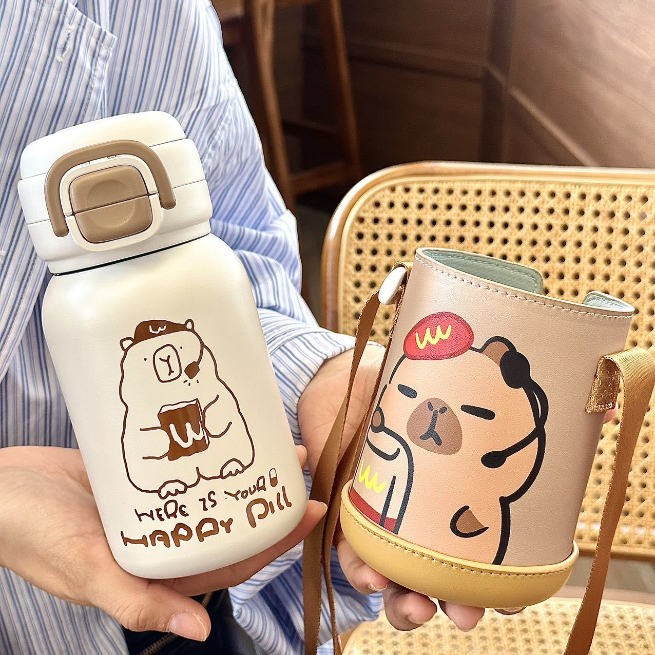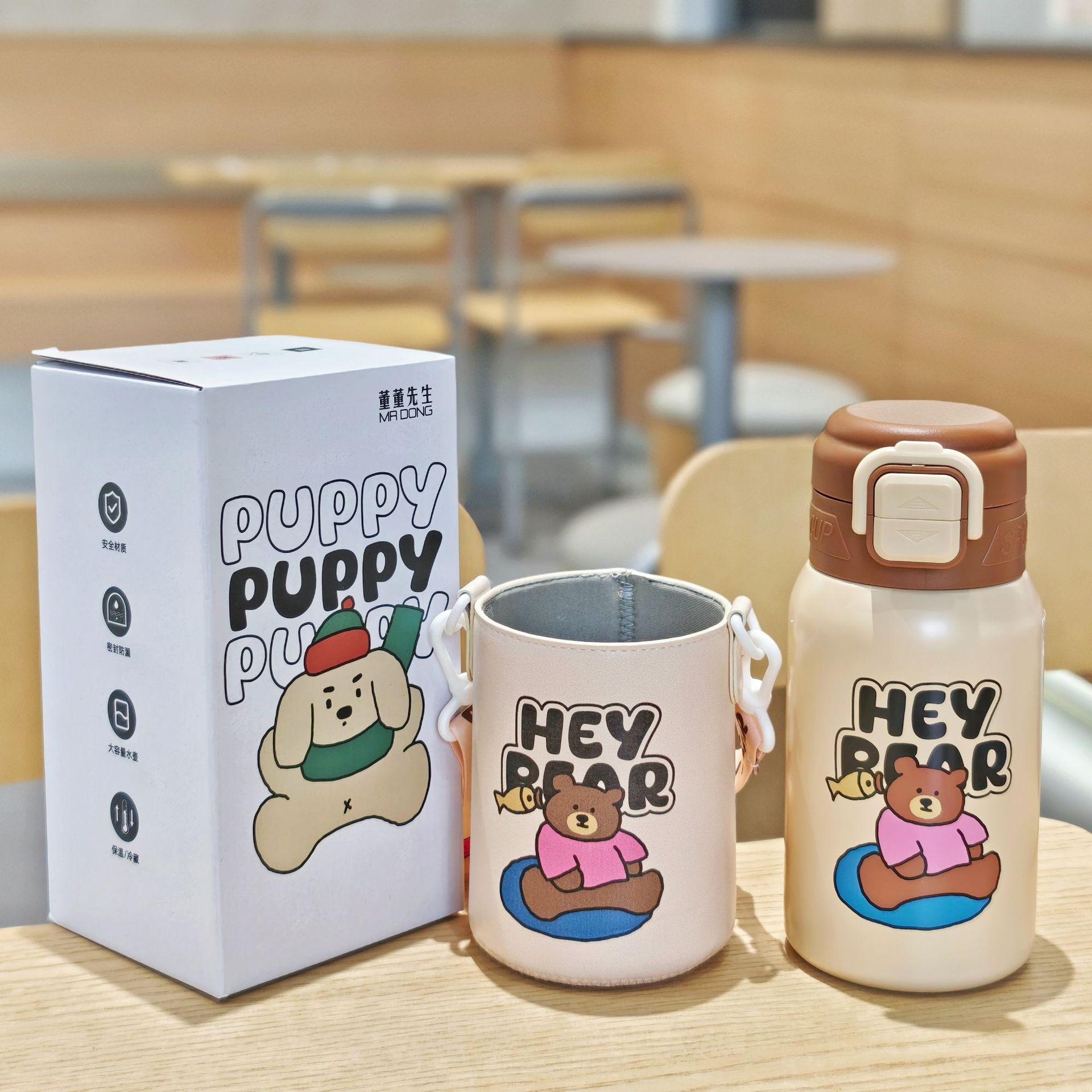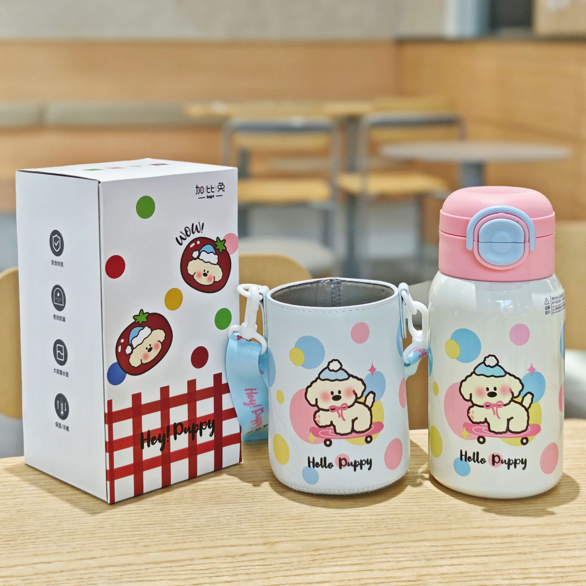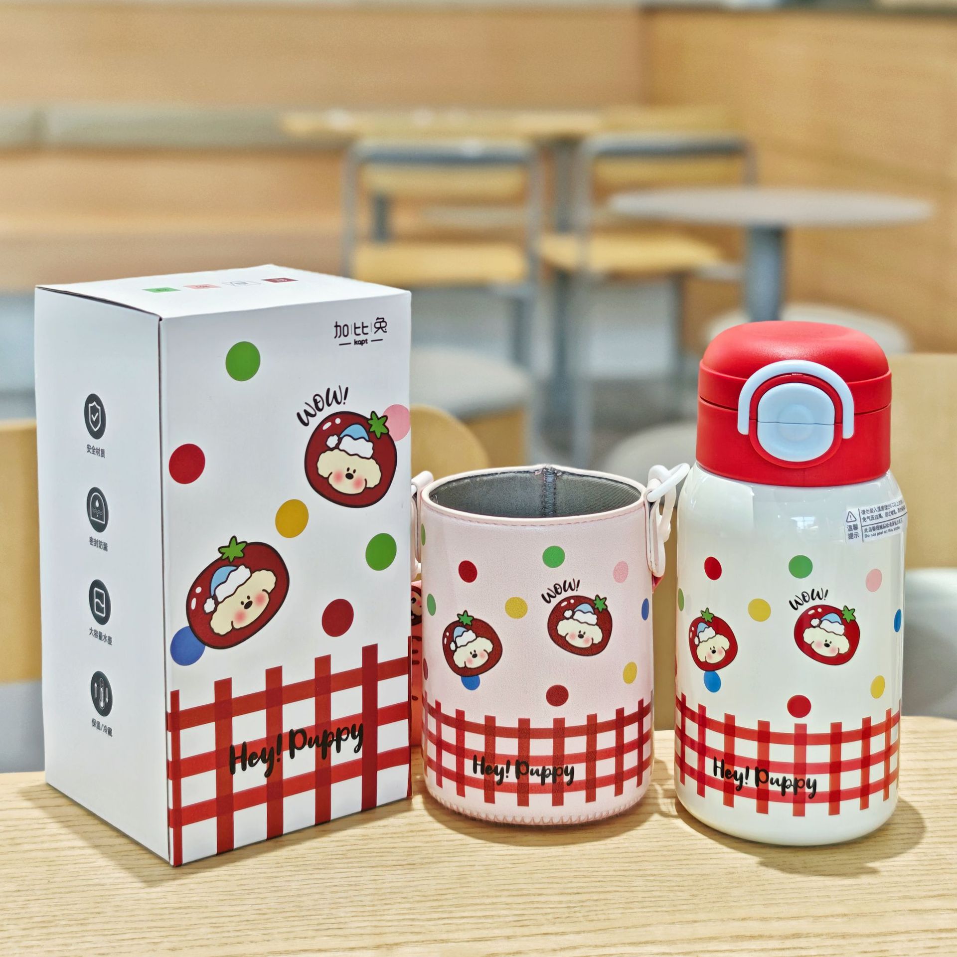 新入荷!かわいい子供用保温カップ ケース付落下防止ストロー付き二重飲用真空カップ プレゼント用