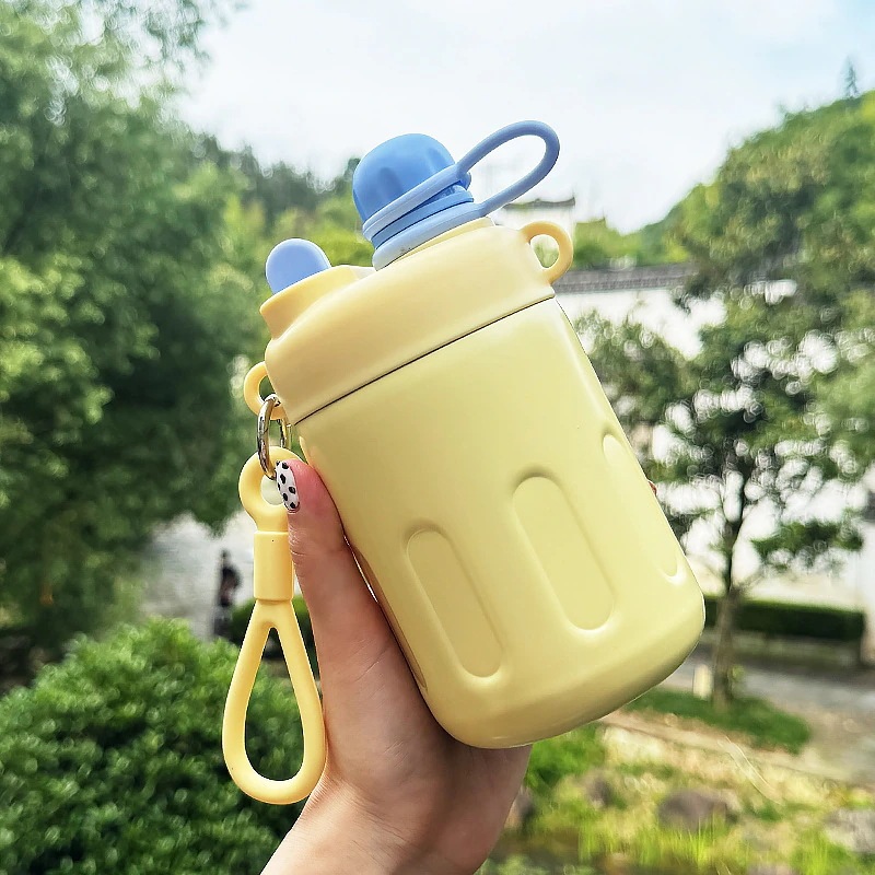 保温カップダブルストロー不銹鋼高颜值学生用大容量携帯用コーヒーカップ吸管カップ