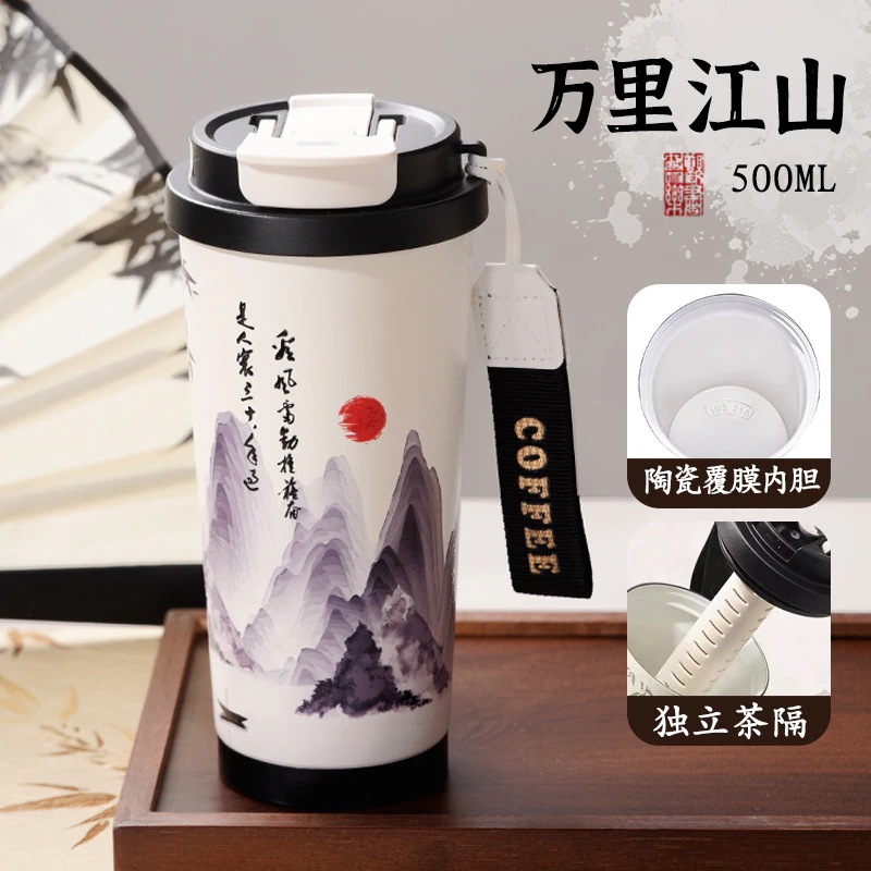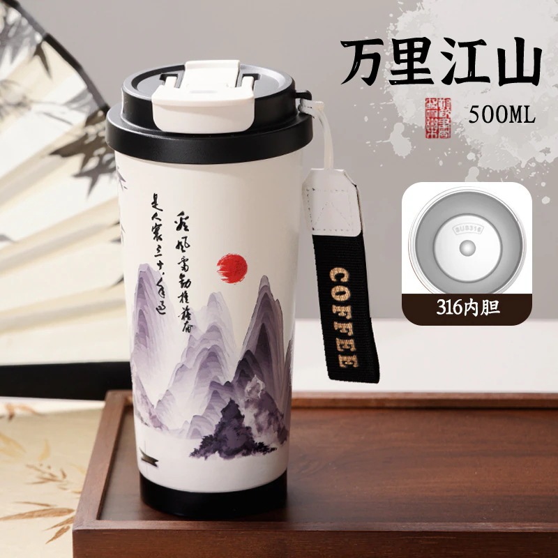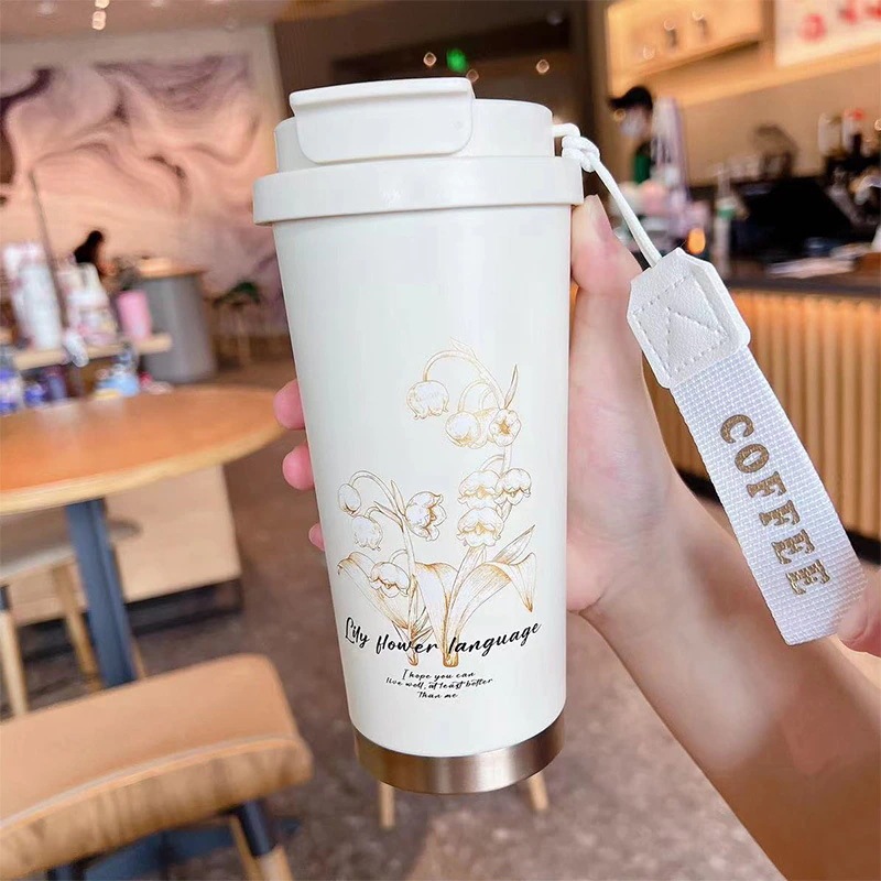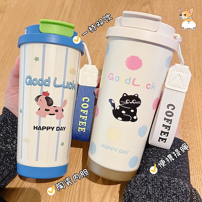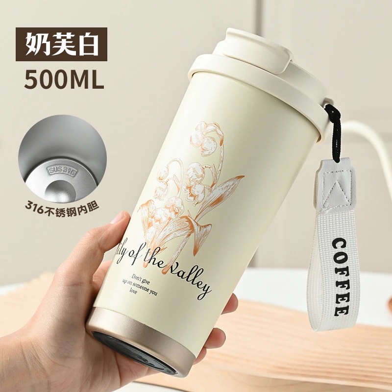316ステンレスコーヒーカップ保温カップ学生高顔値携帯カップ車載ダブルストロー付き水杯
