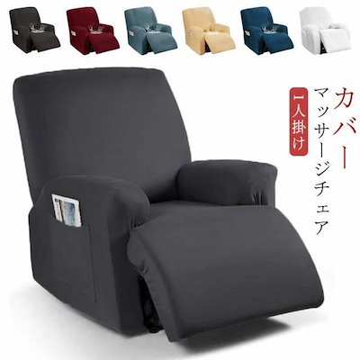 マッサージチェア 肘付き 4点セット 無地 1人掛け カバー サイドポケット リクライニングチェアカバー マッサージチェア 電動ソファ ストレッチ 伸