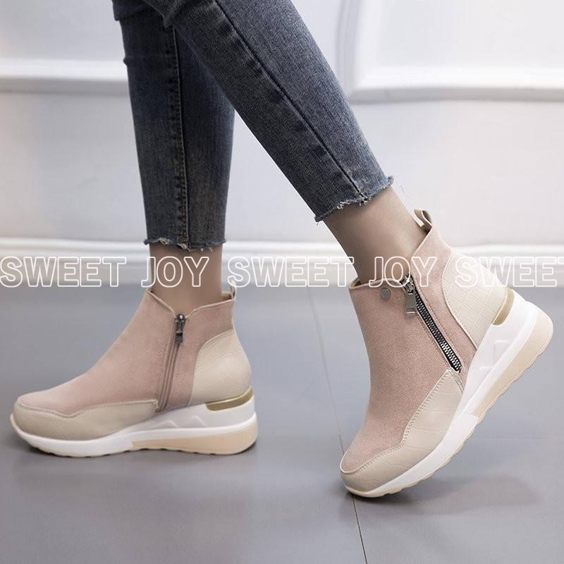 ショートブーツ レディース ブーティー ブーツ ウエッジソール 厚底 スニーカー 歩きやすい 6センチヒール 履きやすい 快適 ストレッチ 秋 冬 美脚 通勤輸送が速い