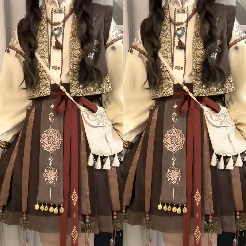 弥煙新韓国韓元素馬甲シャツ半スカート民族値下げ