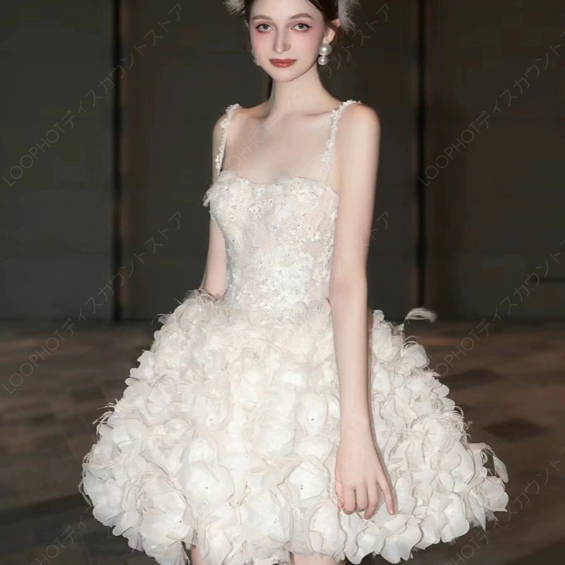 ミニドレス 白 安い 結婚式 二次会 ウェディングミニドレス 花嫁 ウェディングドレス 披露宴 プリンセス パーティードレス ミニ 発表会 コンサート 演奏会-84