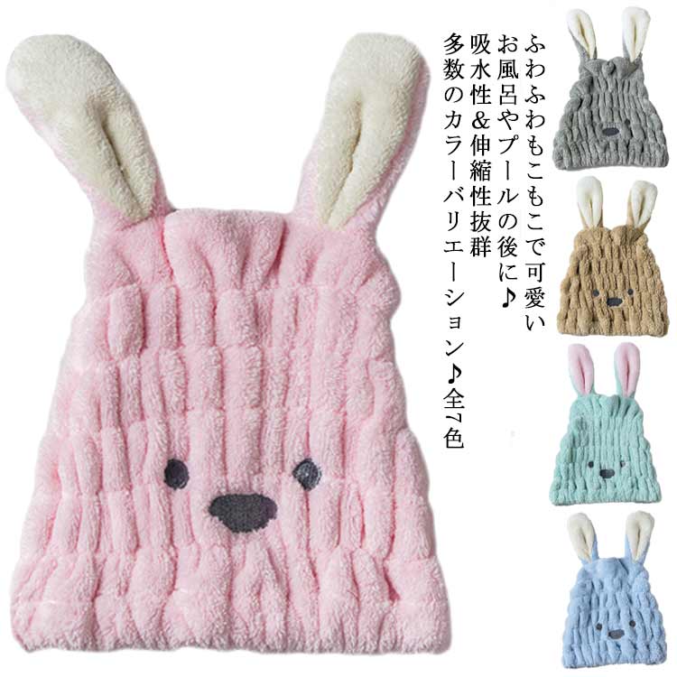 ヘアキャップ ドライキャップ タオルキャップ うさぎ 吸水 タオル 大人 子供 男の子 女の子 シャワー 吸水 速乾 マイクロファイバー 風呂 水泳 スイミング プール 帽子 ヘアターバン お風呂 寝