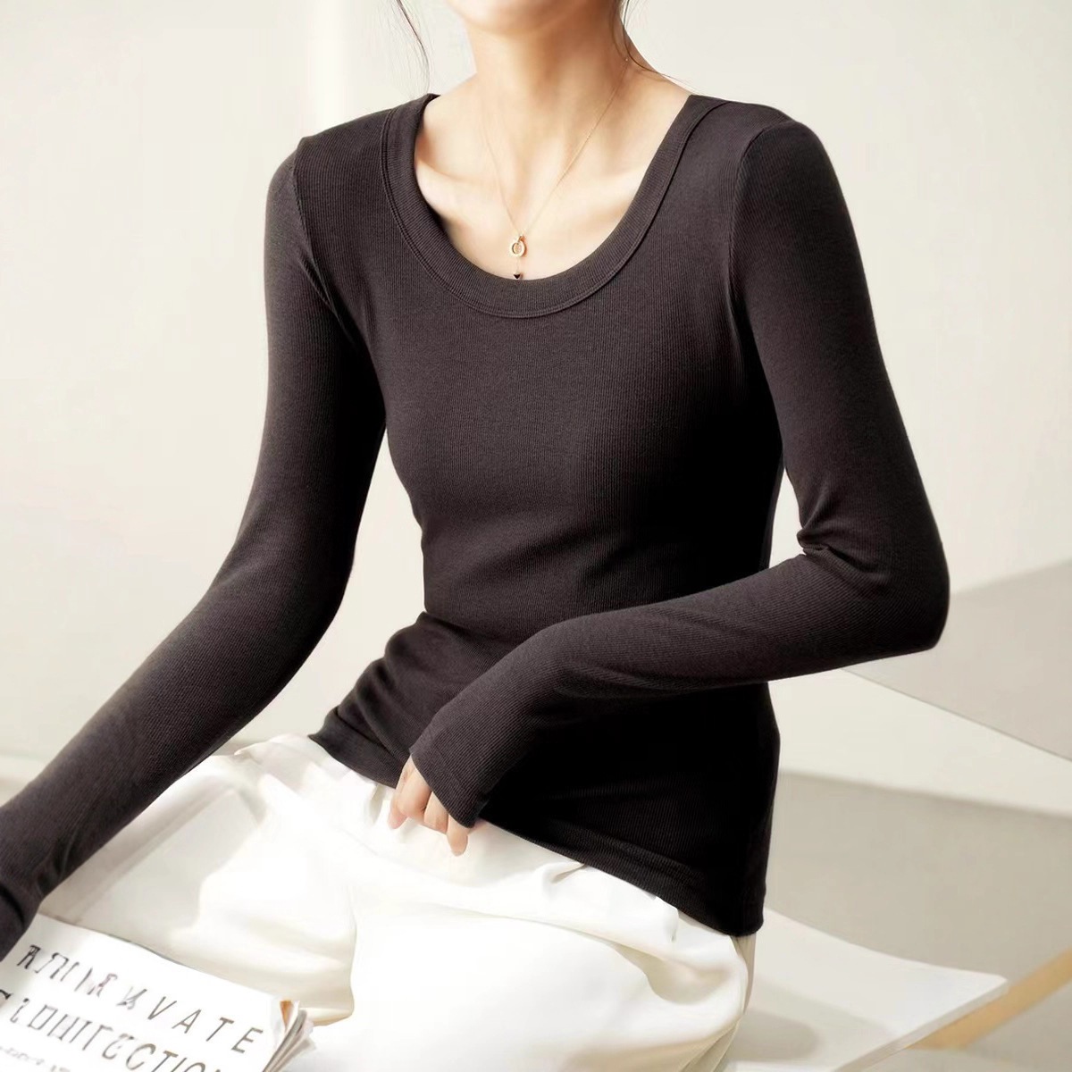 uネック tシャツ 深め レディース 長袖 カジュアル ロンT カットソー 秋冬 冬 きれいめ ルームウエア オシャレ 無地 女性用 肌着 重ね着 綿 大きいサイズ