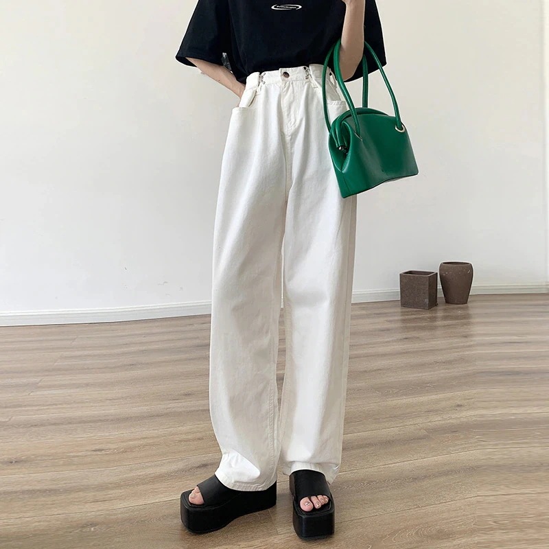 レディース ジーンズ ウエスト ホック で華奢見え!ウエスト調整可で華奢見え ボトムス ハイウエスト ワイド ストレート デニム パンツ ゆったり ストレートパンツ ストリート 着やせ ジーパン10代