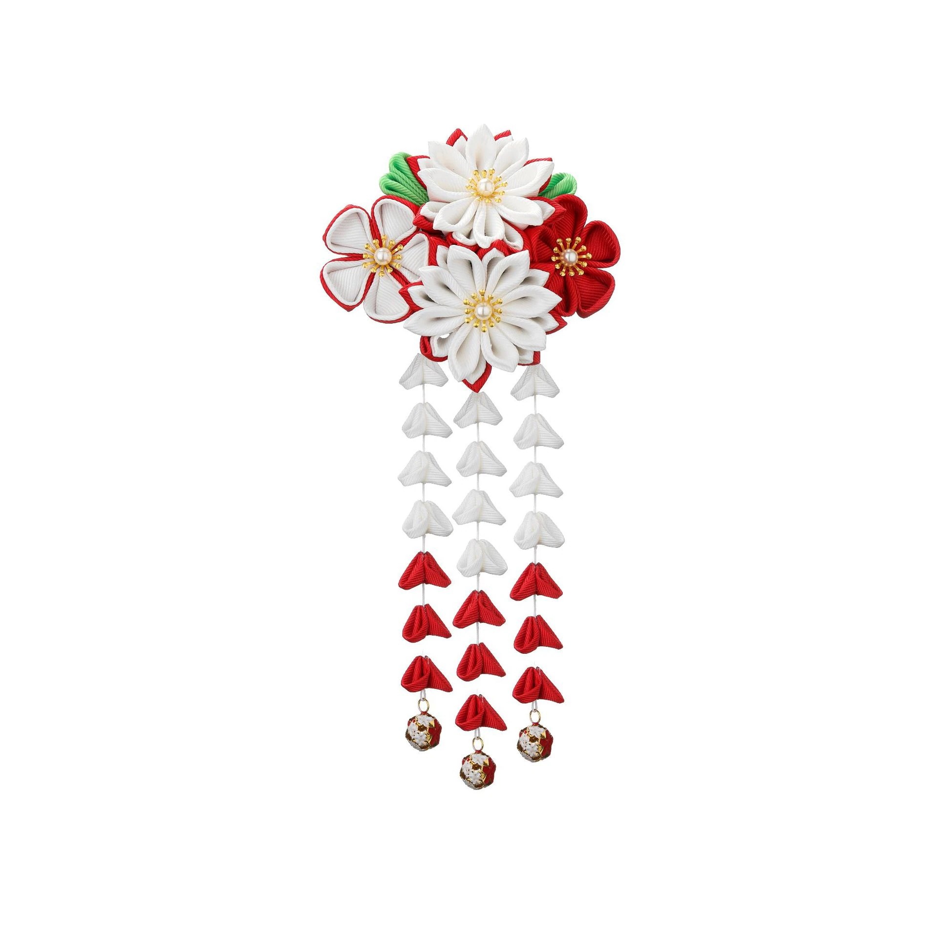 【1点ご購入 で10点プレゼントいたします】和風フラワーフリンジ髪飾り和装赤い花のヘアピン手作り二重の大きな花