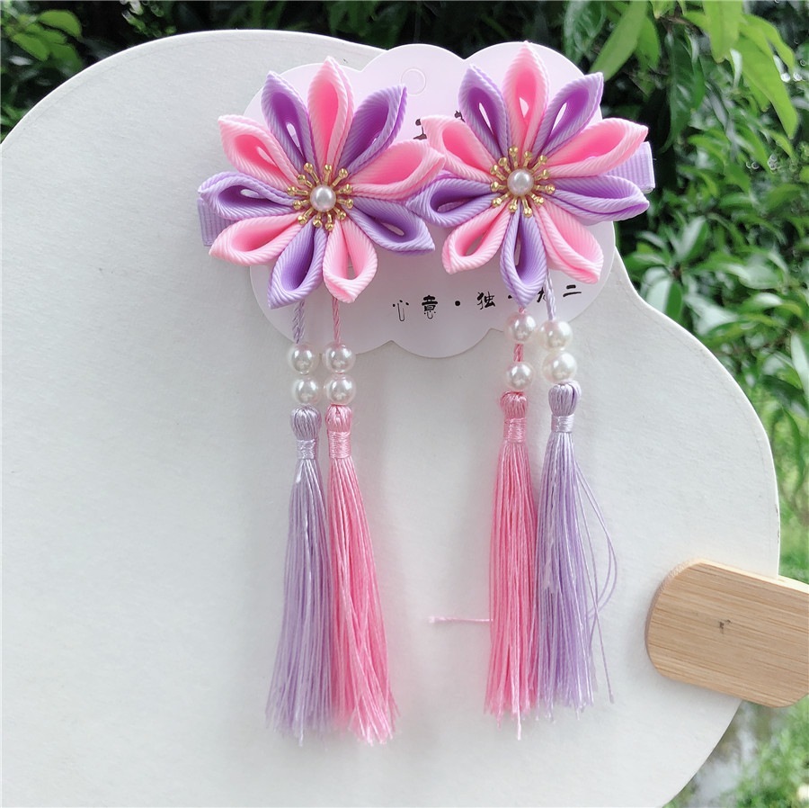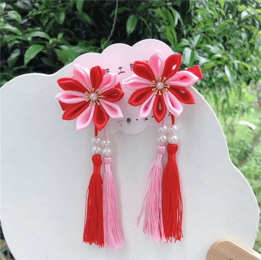 【1点ご購入 で10点プレゼントいたします】レトロなスペアリブの花のヘアピンフリンジヘアアクセサリー子供のお姫様のヘアアクセサリー和風サイドクリップ