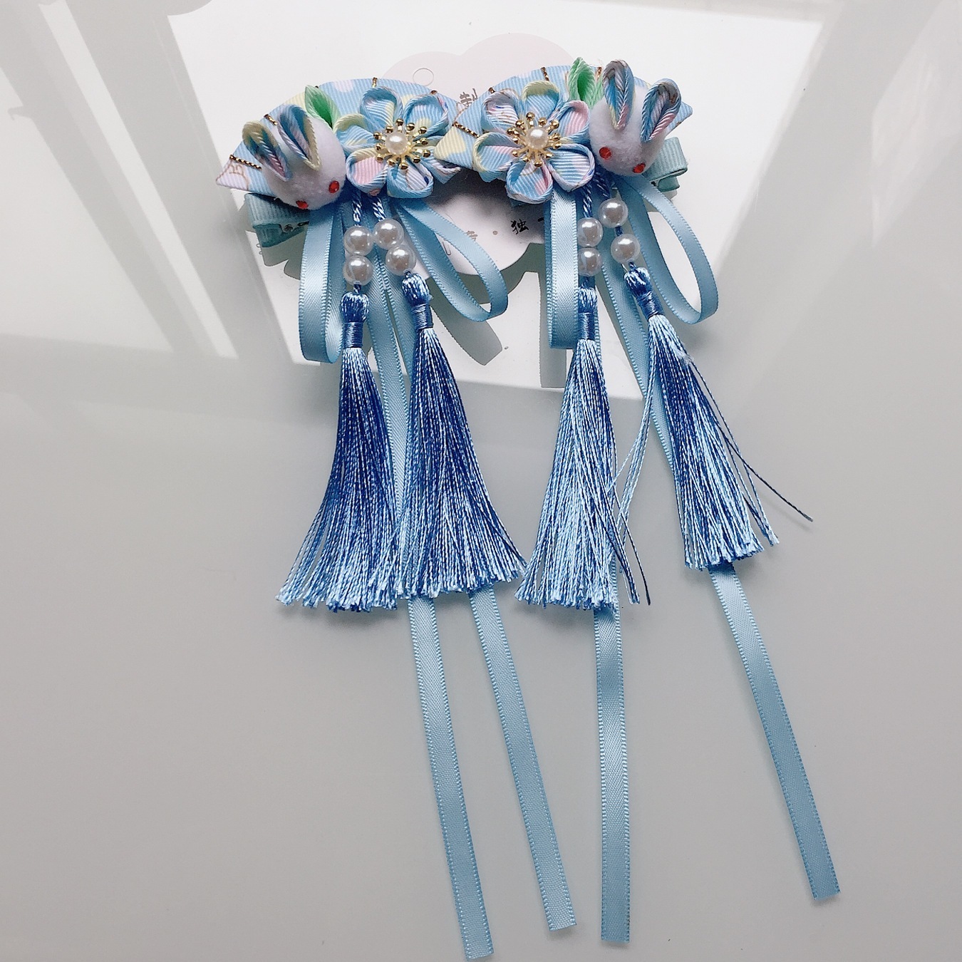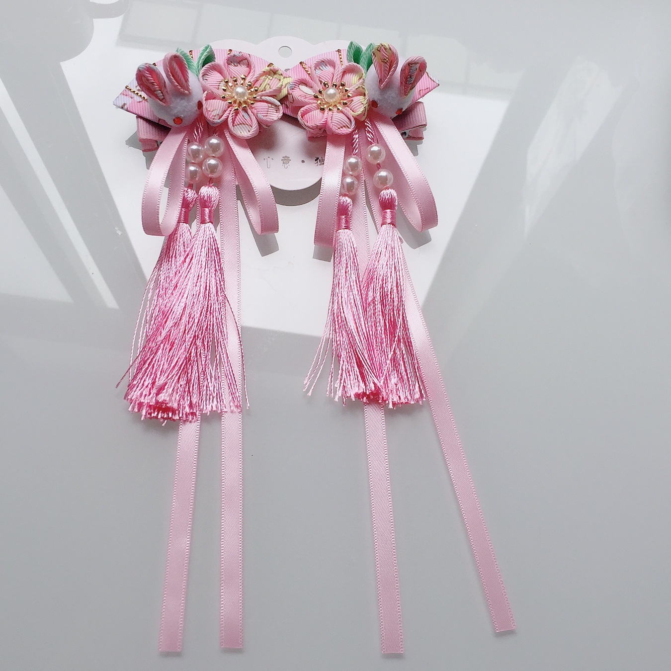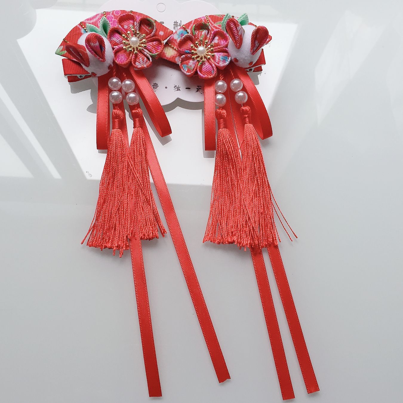 【1点ご購入 で10点プレゼントいたします】布芸とファンの花のヘアピンかわいい子ウサギペアのフリンジリボン髪飾りと着物のアクセサリー