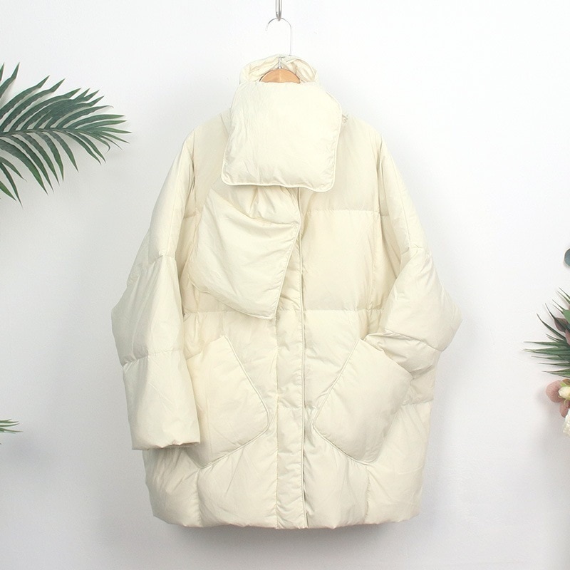 ダウン90% ダウンジャケット軽量 マフラー付き ノーカラー ダウンコートダウンジャケット ダウン&フェザー 襟なし コートあったかアウター アウター カジュアル レディース 通勤