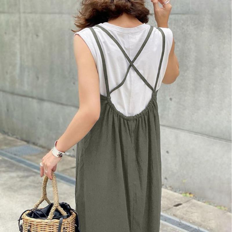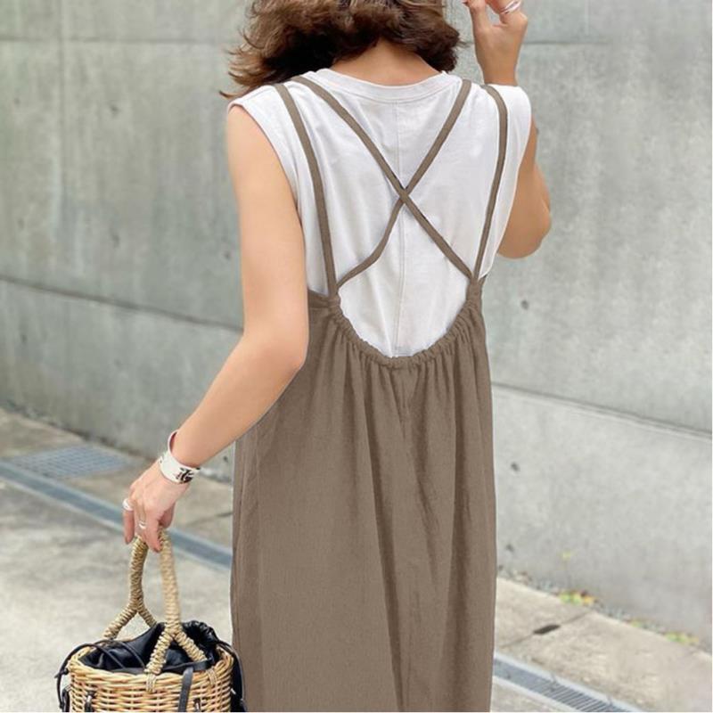 2025夏 人気 ワンピース レディース 日系 キャミソールワンピ 気質 百掛け ノースリーブロングワンピース カジュアル 着やせ 体型カバー韓国 ワンピース 通勤