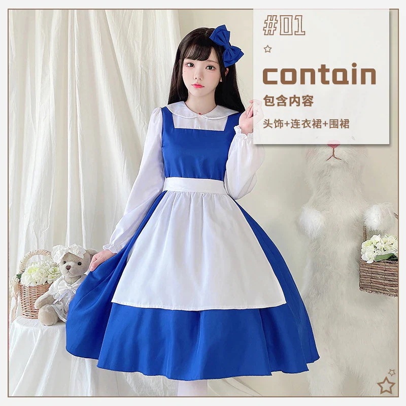 ロリータ メイド服 猫系スカイブルーメイド服日系アニメロリーメイドコスプレメイドスカートプリンセスワンピース 韓国ファッション