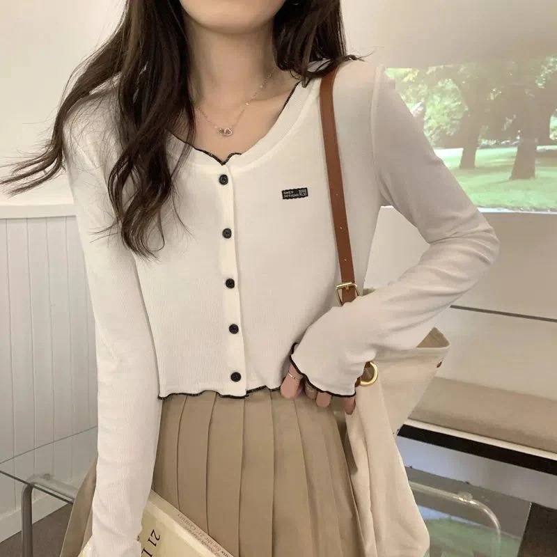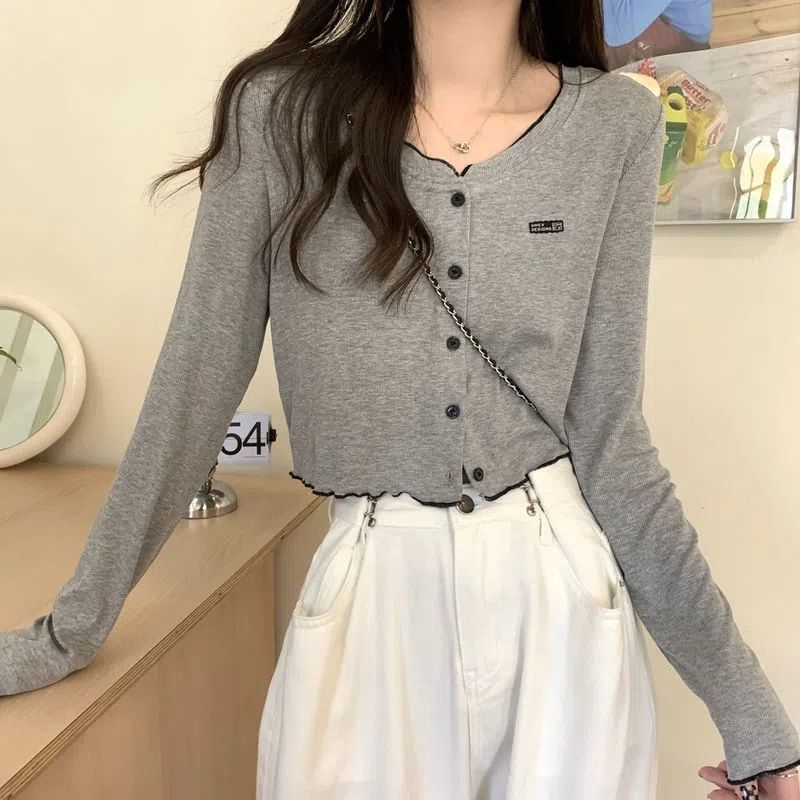 カーディガン スリムフィットインナーカーディガン女性用ショートトップス