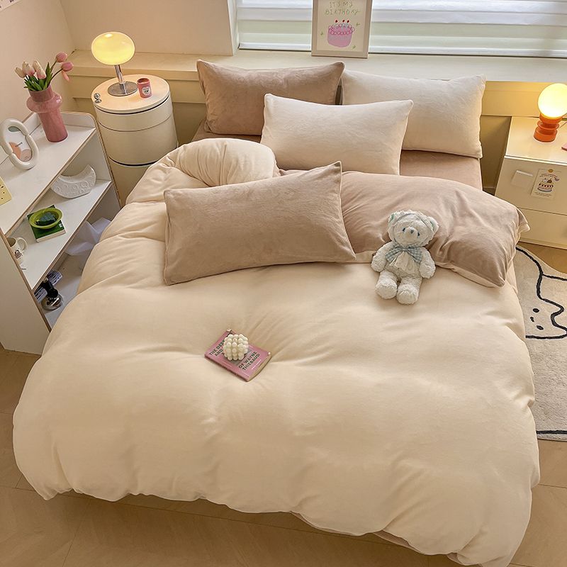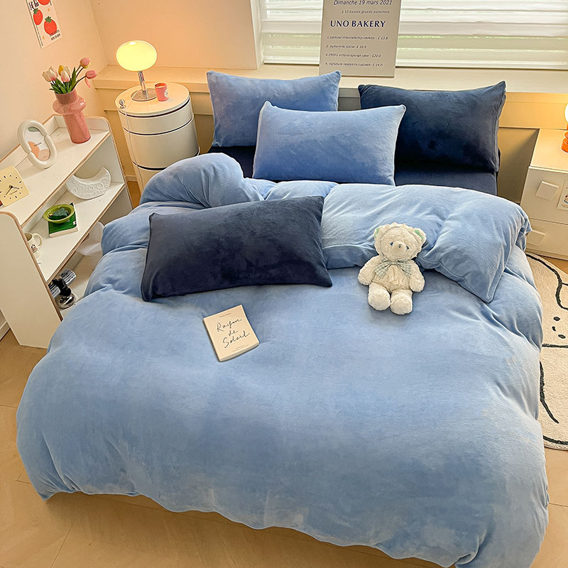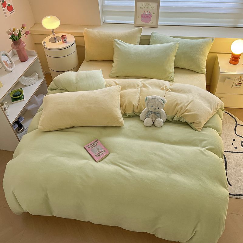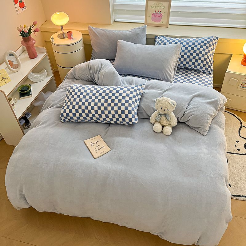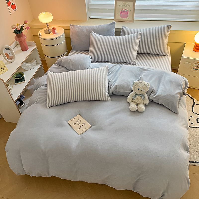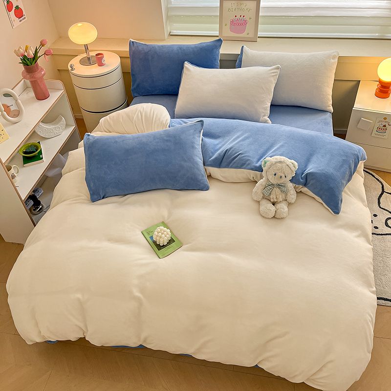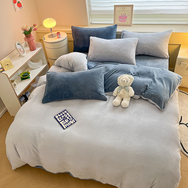 [現品/新品]増粘ミルクベルベット4点セット両面ベルベットベッドシーツシングル掛け布団カバー暖かい学生寮3点セット