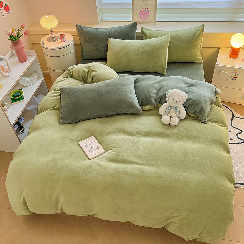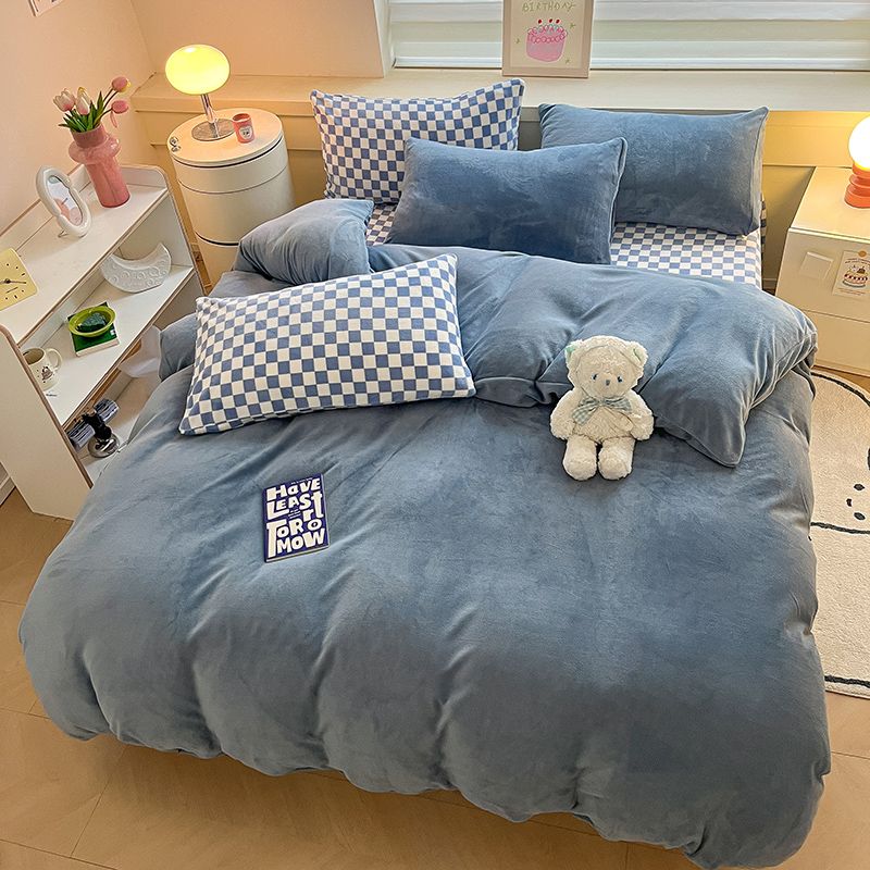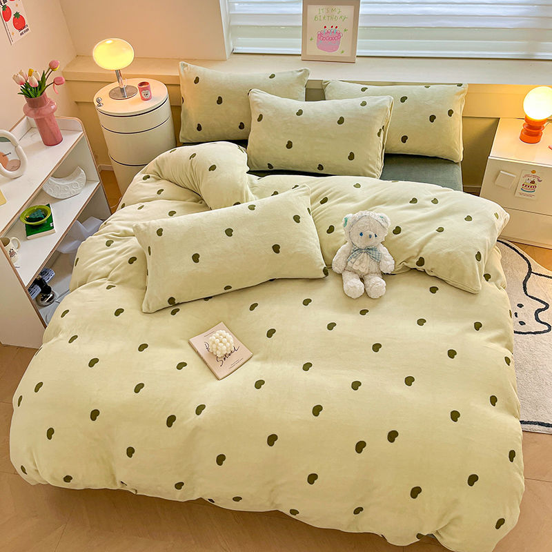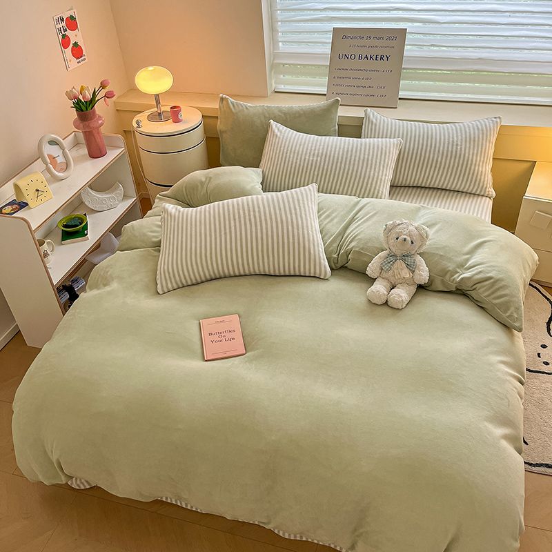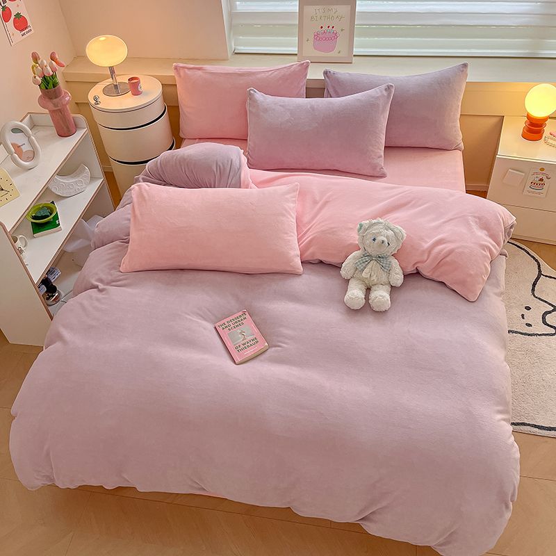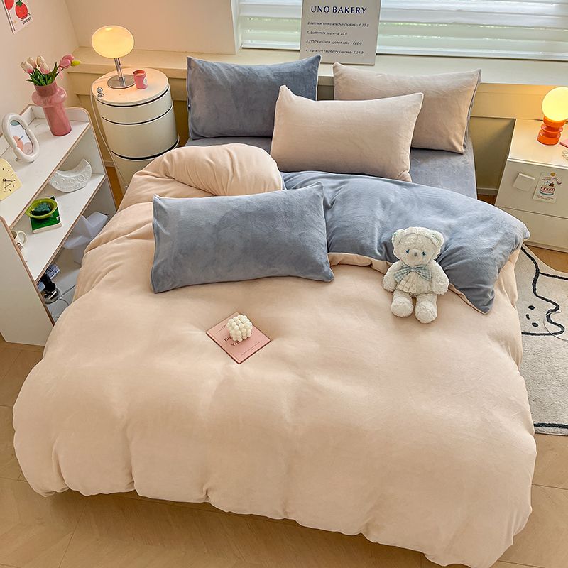 [現品/新品]増粘ミルクベルベット4点セット両面ベルベットベッドシーツシングル掛け布団カバー暖かい学生寮3点セット