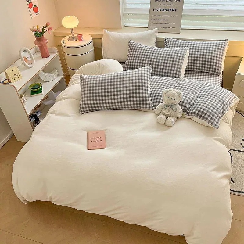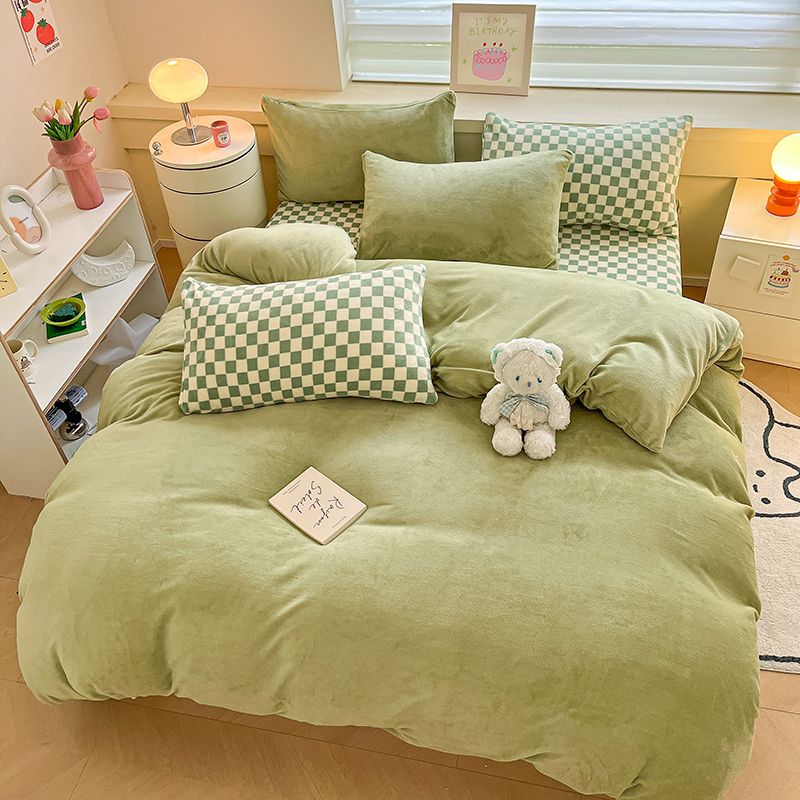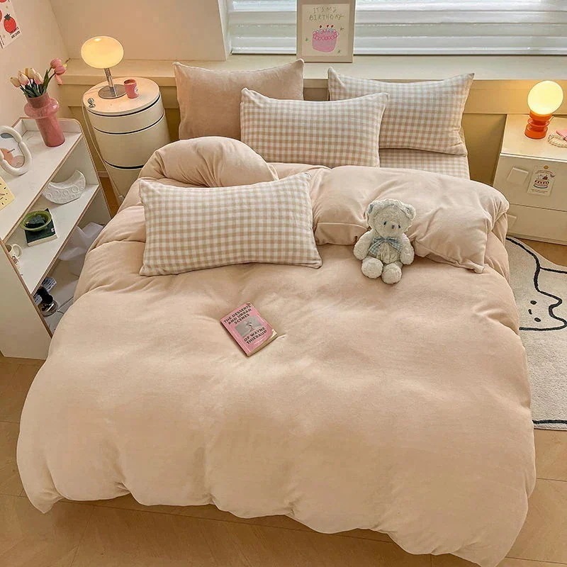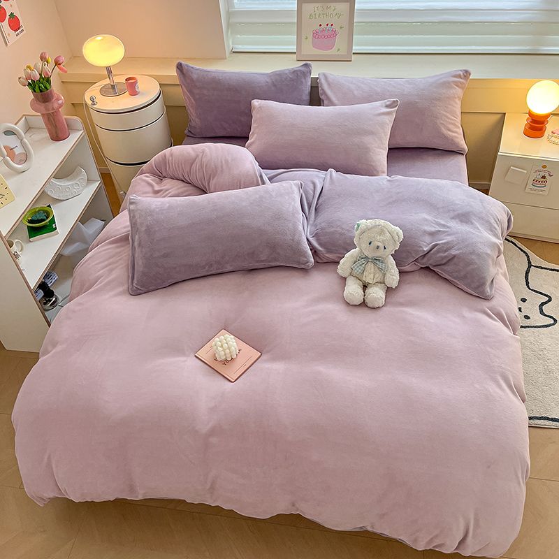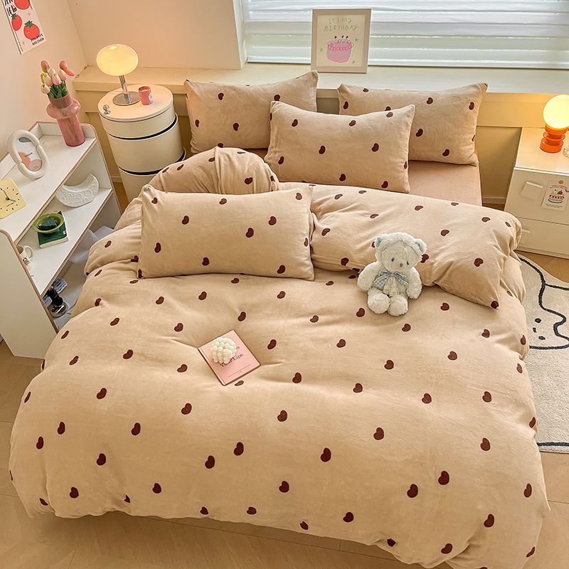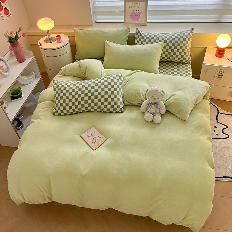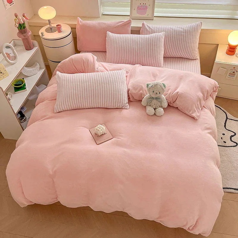 [現品/新品]増粘ミルクベルベット4点セット両面ベルベットベッドシーツシングル掛け布団カバー暖かい学生寮3点セット