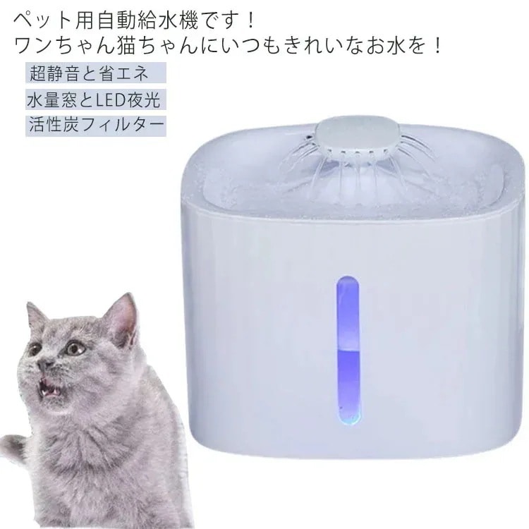 自動給水機 犬 猫 ペット給水機 3L大容量自動給水機 USB充電式 水飲み器 浄水 ペット用品循環式給水器 水量目視可能 LEDライト付き 活性炭フィルター 超静音 犬猫兼用 ネコ イヌ 吸水 猫用
