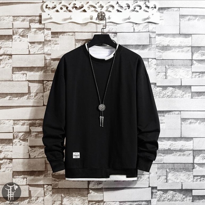 トレーナー レイヤード風Tシャツ 重ね着風 メンズ トップス 切り替え スウェット オシャレ プルオーバー 長袖 クルーネック 春服 秋服 新作