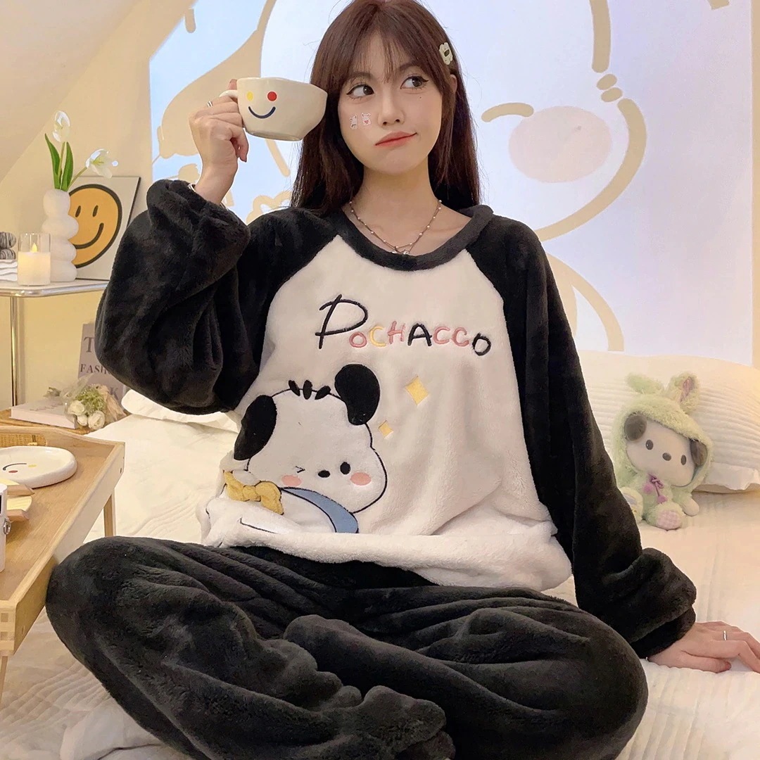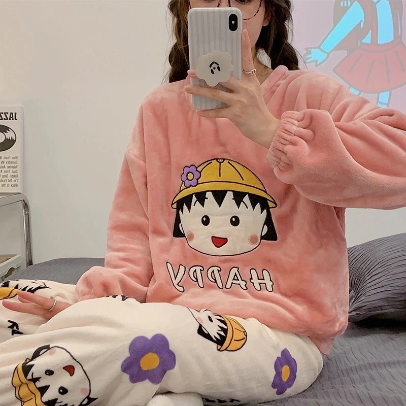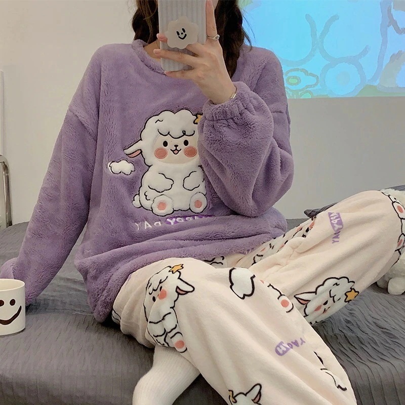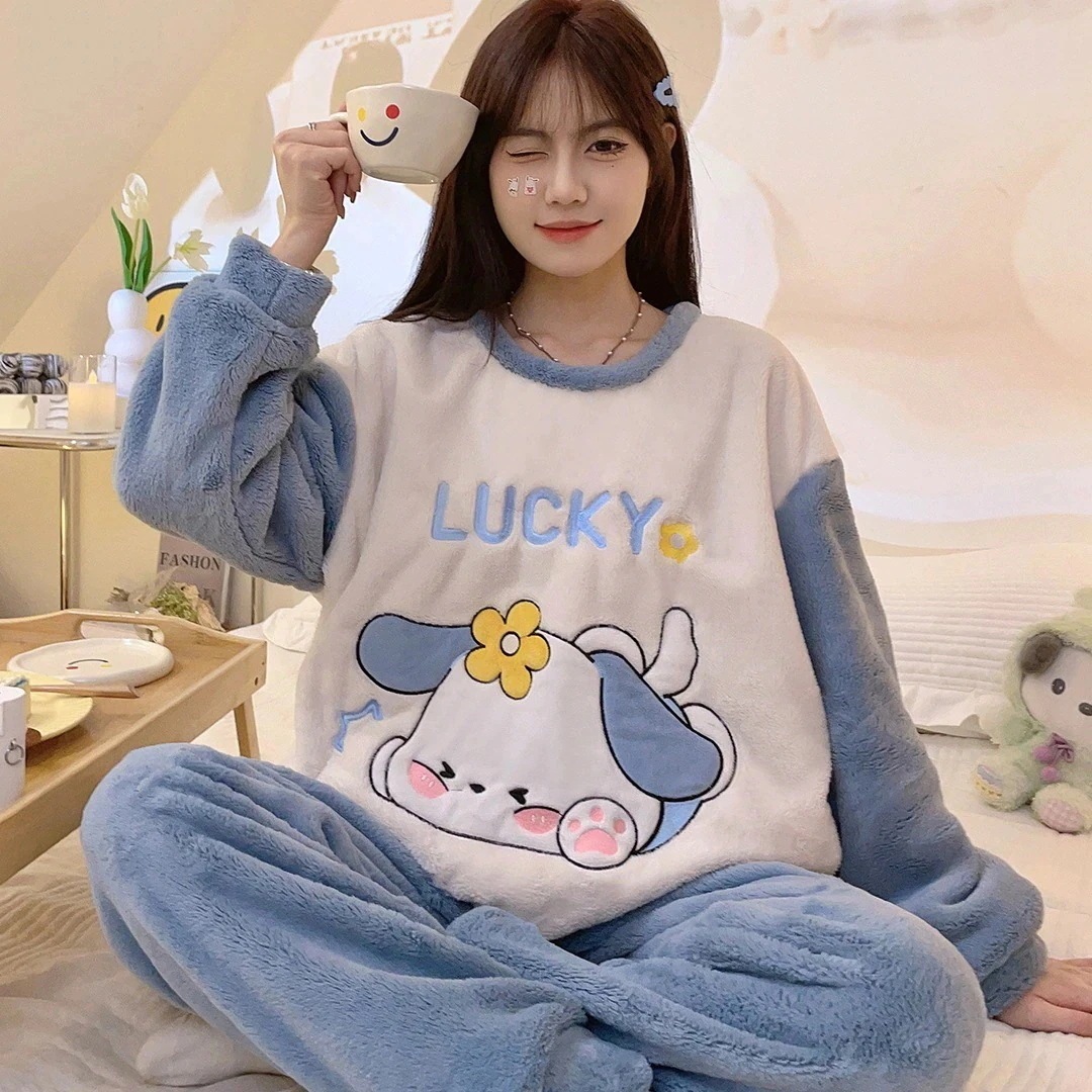 女性用コーラルベルベットパジャマ厚くて可愛い女の子フランネル暖かい家着セット