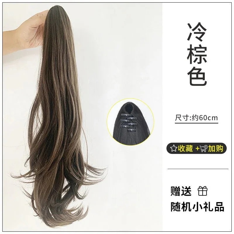 グラブクリップハイポニーテールウィッグメスミドルレングスカーリーヘアナチュラルマイクロボリュームビッ
