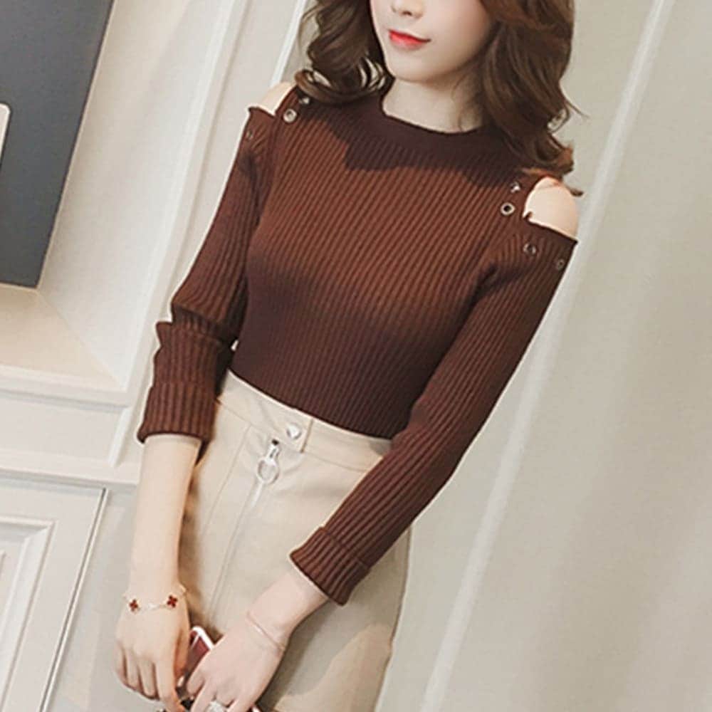リブニット レディース 肩だし セーター セクシー リング付き トップス 着やせ ショート丈 カジュアル