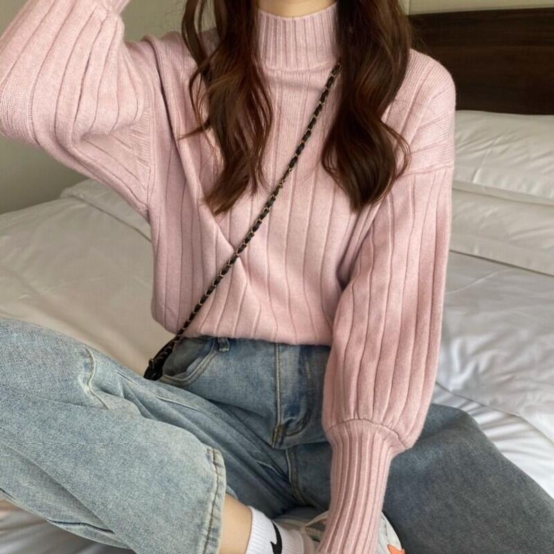 ラウンドネックニット レディース ニットトップス スリム ハイネック トップス ニット ベーシックニット トップス