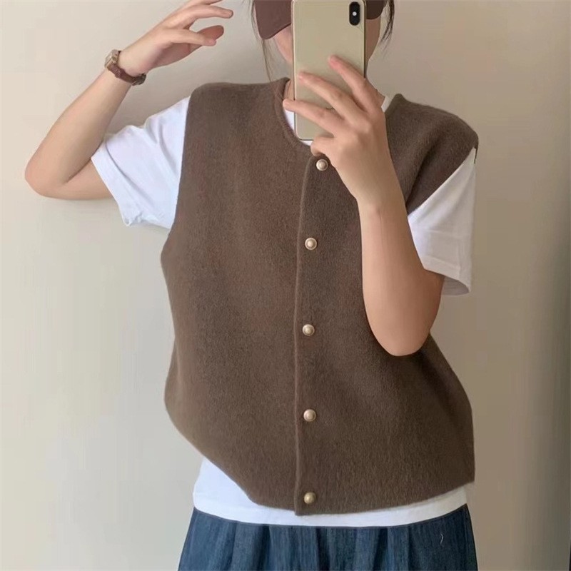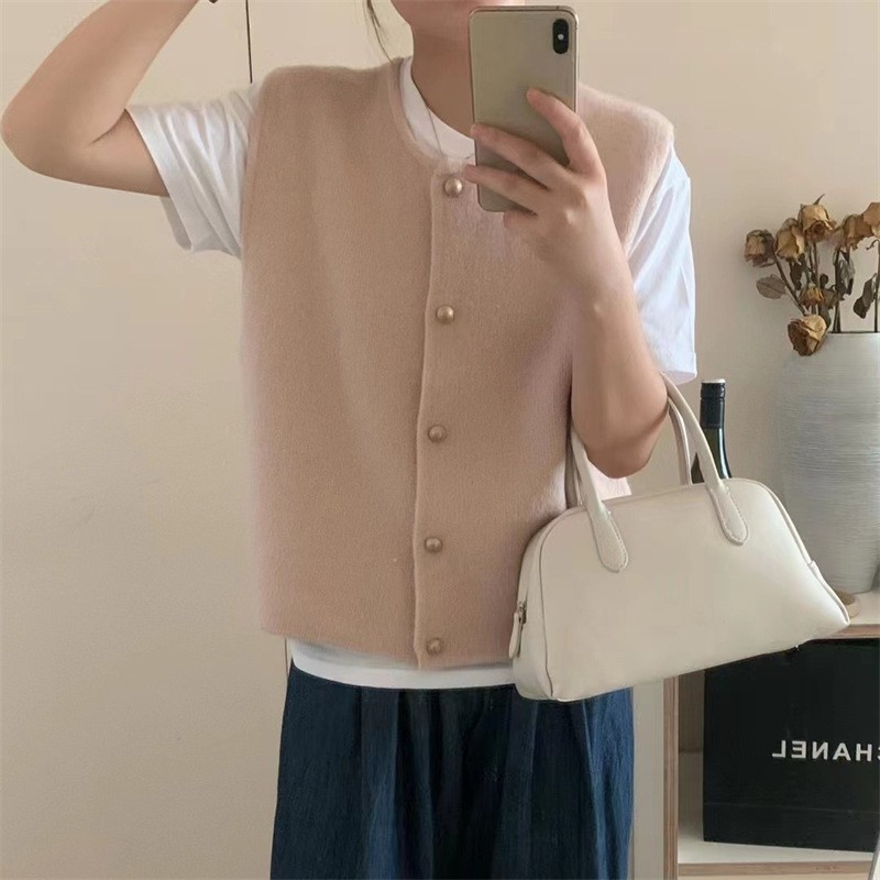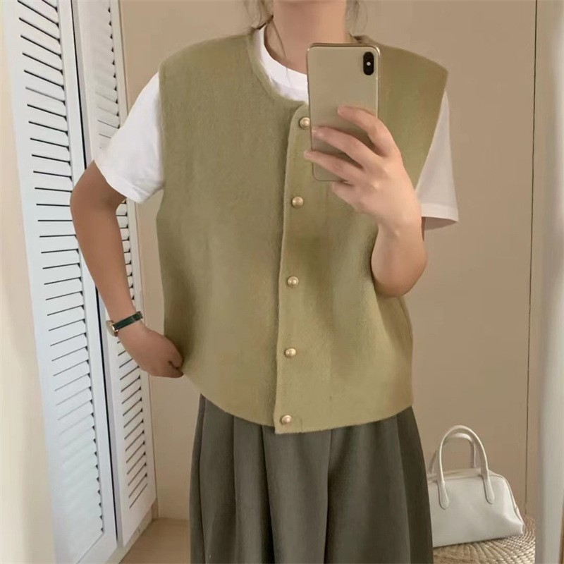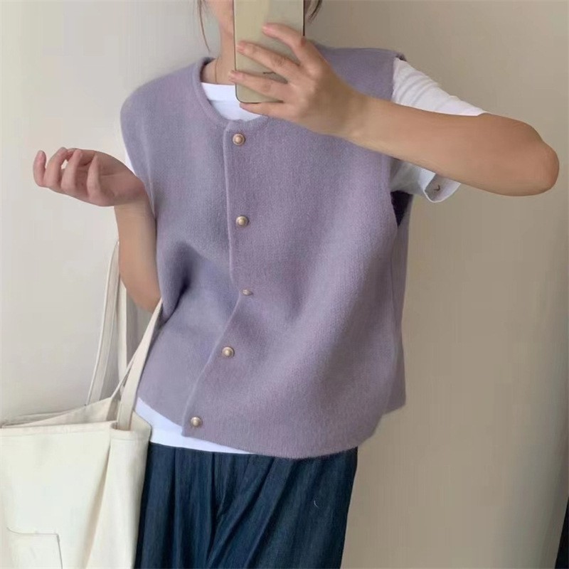 韓国ファッション 初秋新作 無地 ニットベストノースリーブ サマーニットベストレディース レイヤード トップスセーター カーディガン ベスト