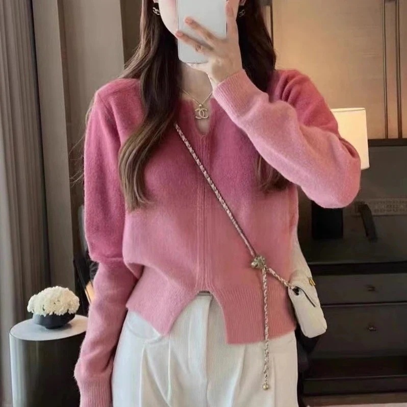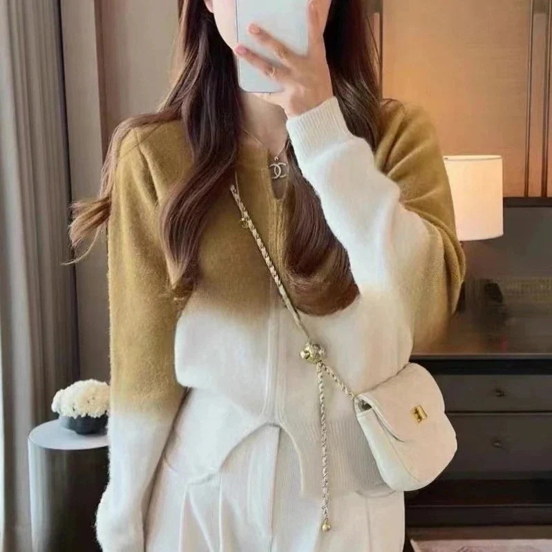 ニッチデザイン イレギュラー 柔らかい セーター ゆったり ショート グラデーション ベ一シックニット プルオーバーデザイン トップス レディース