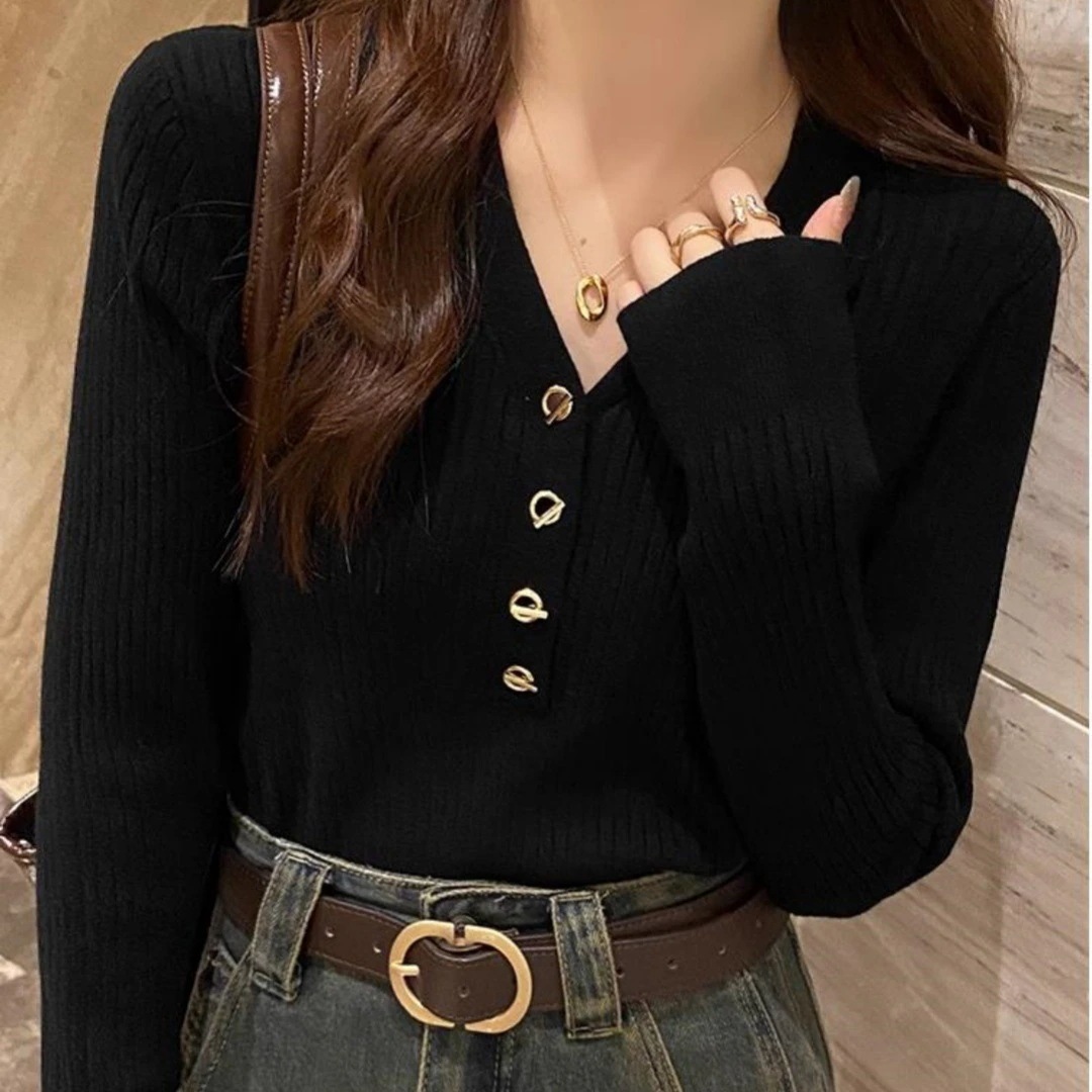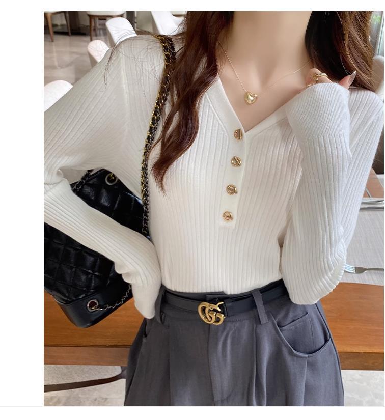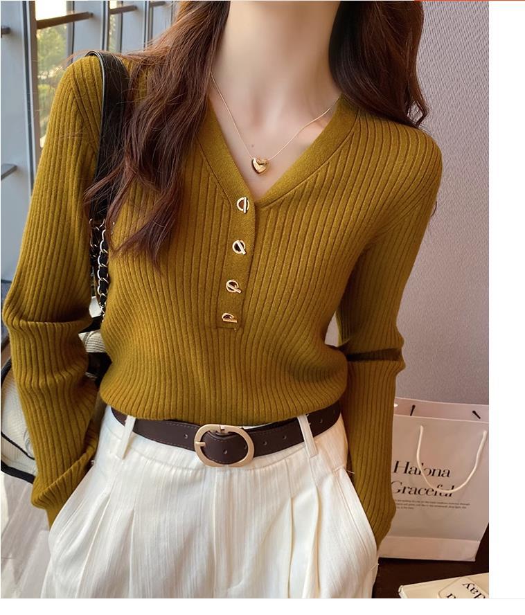 ニットセーター レディース ベーシックニット トップス アンダーウェア Tシャツ 韓国ファッション 無地 着痩せ 通勤 秋 Vネック セーター