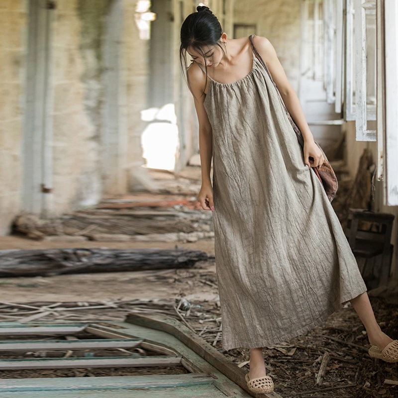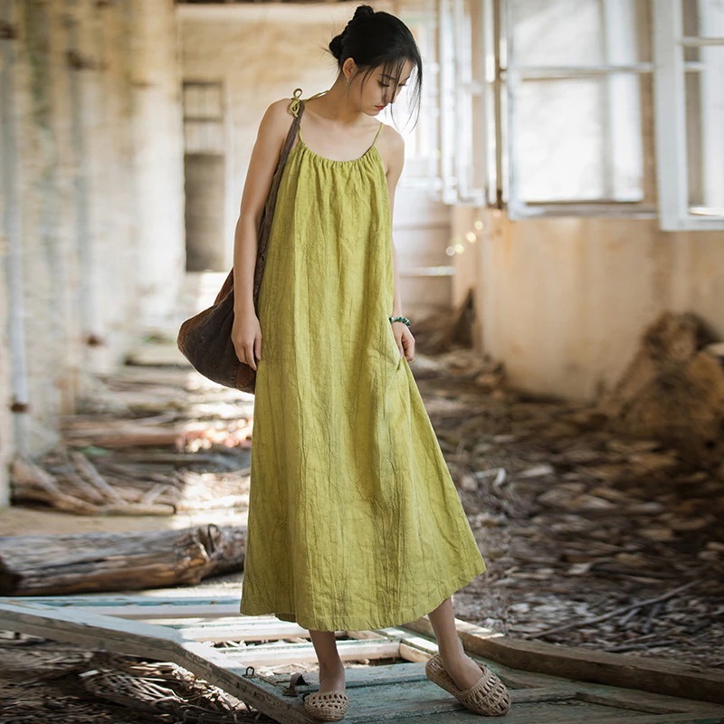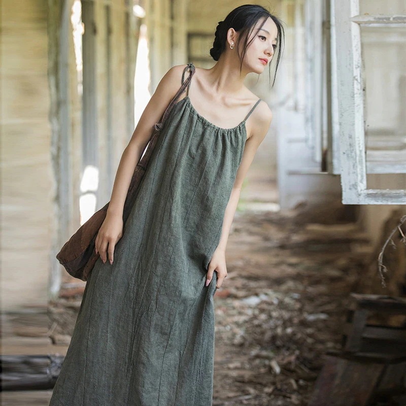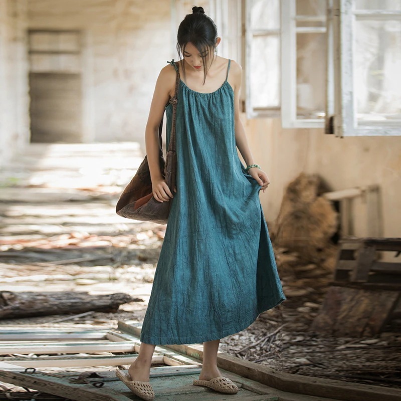 韓国 ワンピース 夏 調節可能なロングキャミソールスカートゆったりレトロ春夏痩せた雰囲気の婦人服スカート レディース パーティードレス シャツワンピース