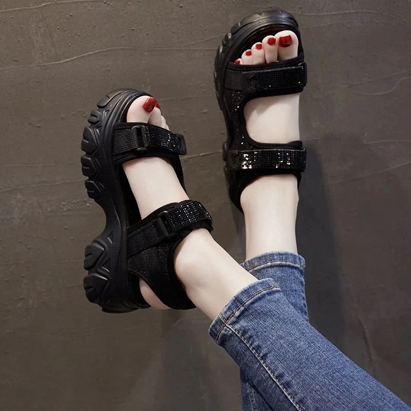 厚底サンダル 夏のウェッジヒールハイヒールカジュアルビーチシューズ2025高軽量ソフトソール婦人靴 スポーツサンダル レディース