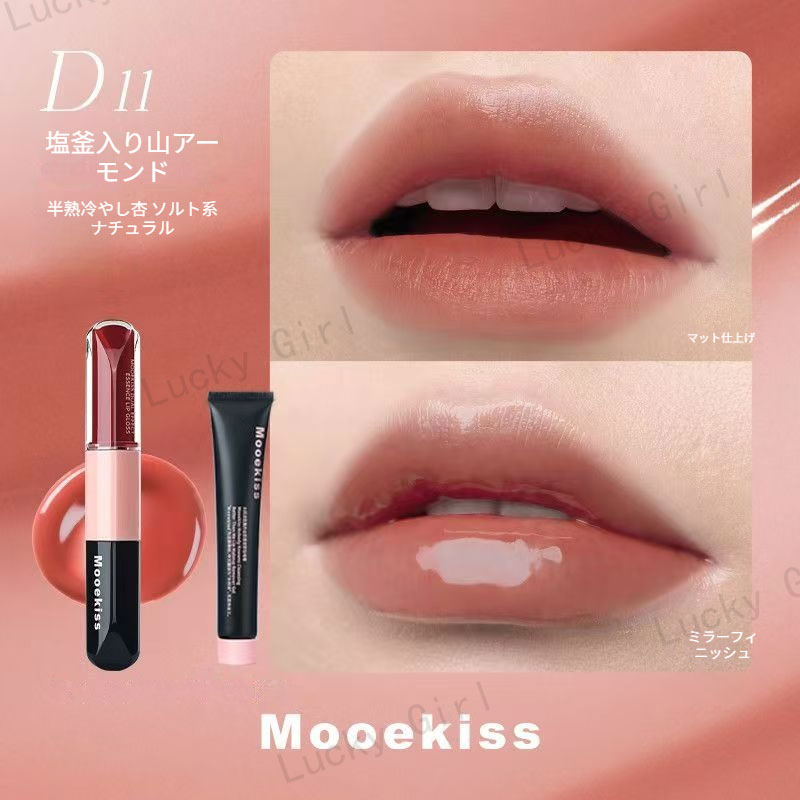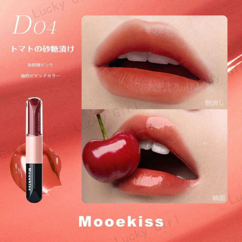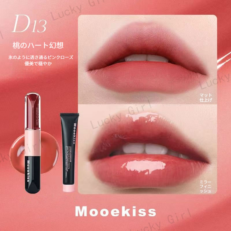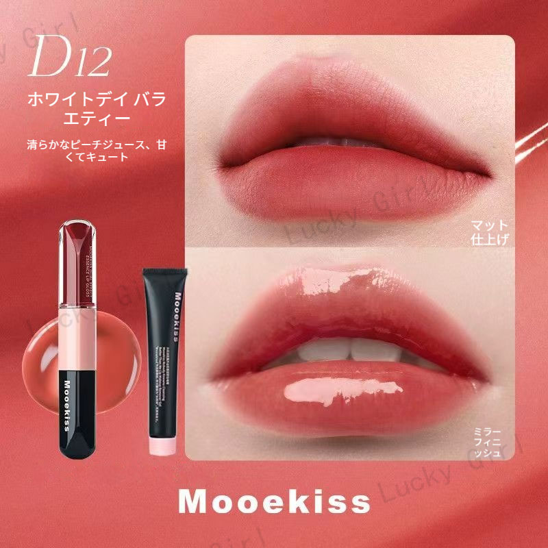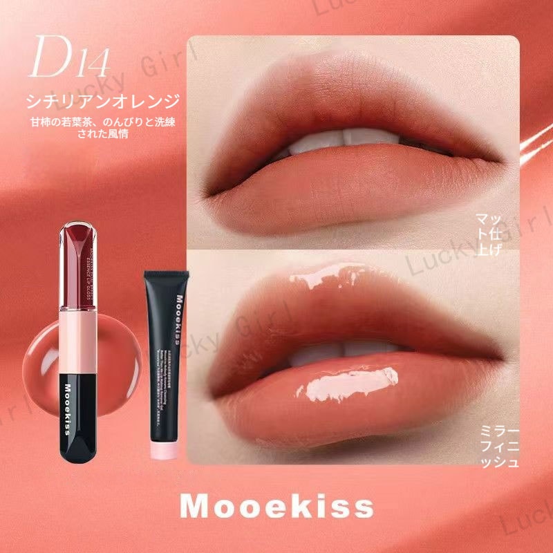 Mooekiss【公式正規品 急速出荷】双頭口紅/2in1きょうめん水光/14色/8時間うるおい続/カップにつかない色もち/リップグレーズ/鏡面 マット/透け感リ/リッププロテクター/高密着色落ちしにくい やさ