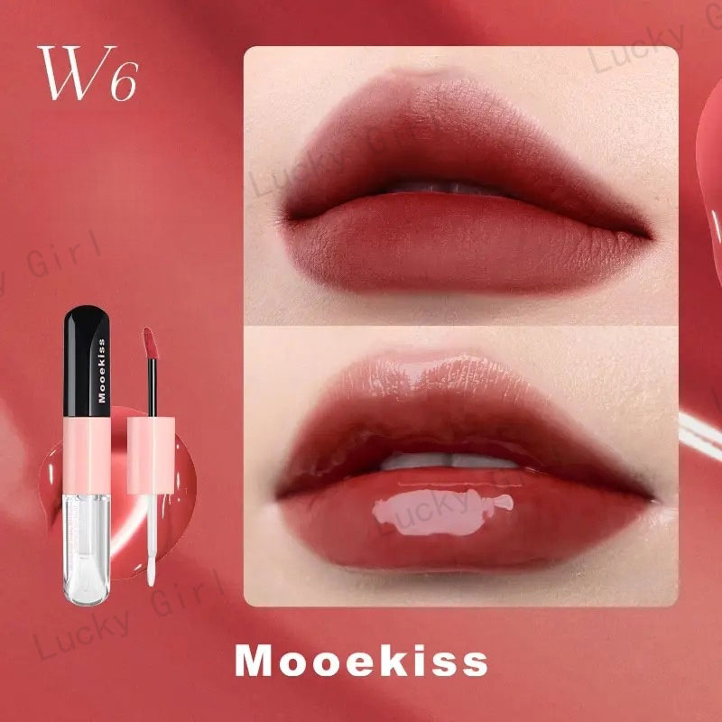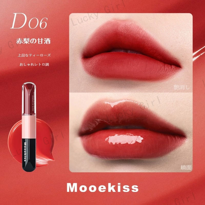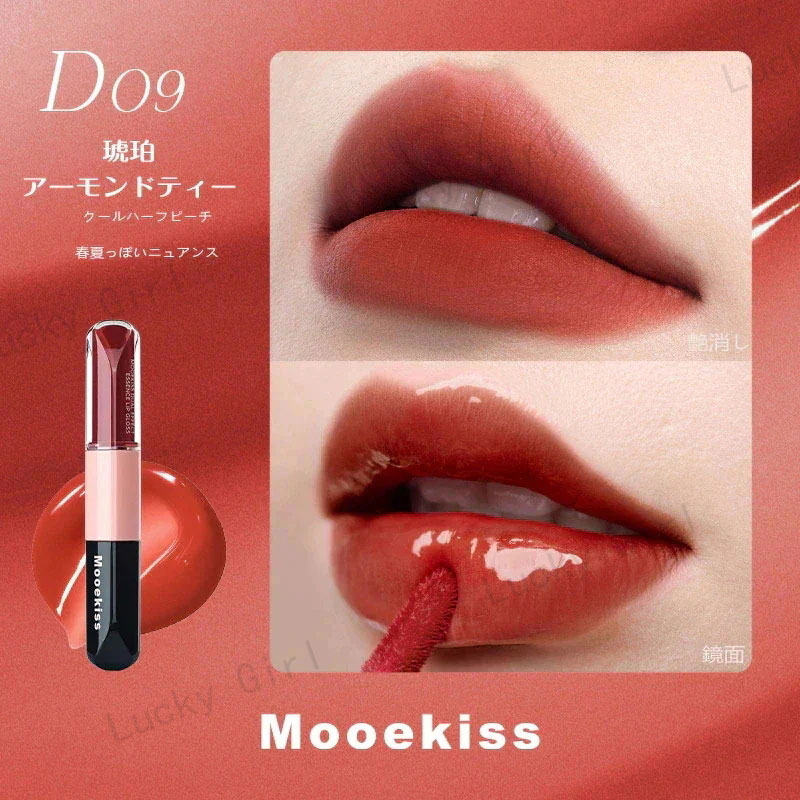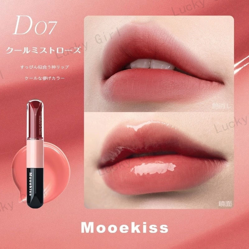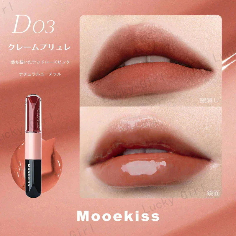Mooekiss【公式正規品 急速出荷】双頭口紅/2in1きょうめん水光/14色/8時間うるおい続/カップにつかない色もち/リップグレーズ/鏡面 マット/透け感リ/リッププロテクター/高密着色落ちしにくい やさ