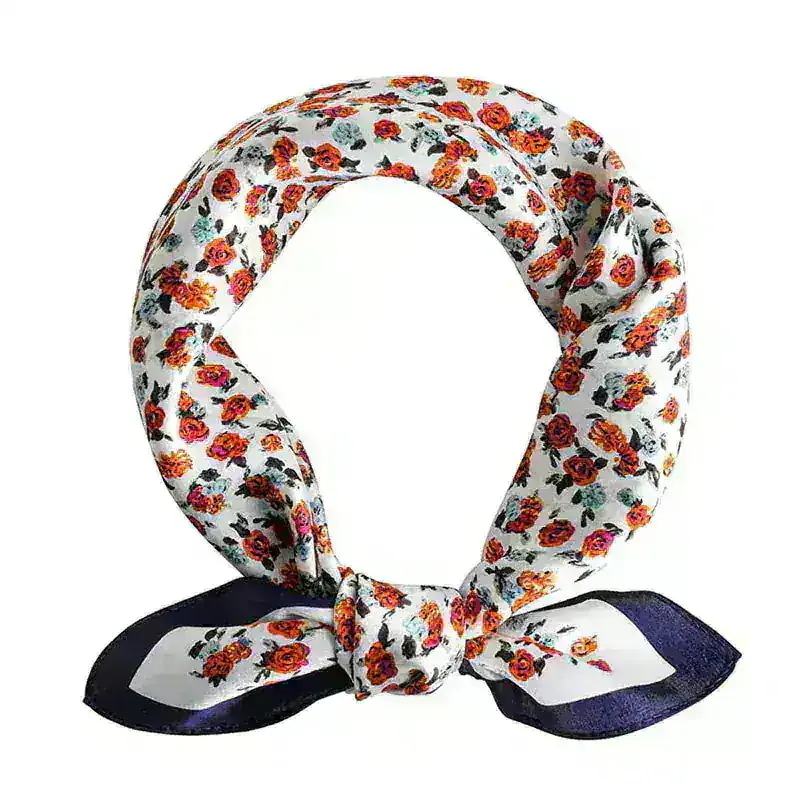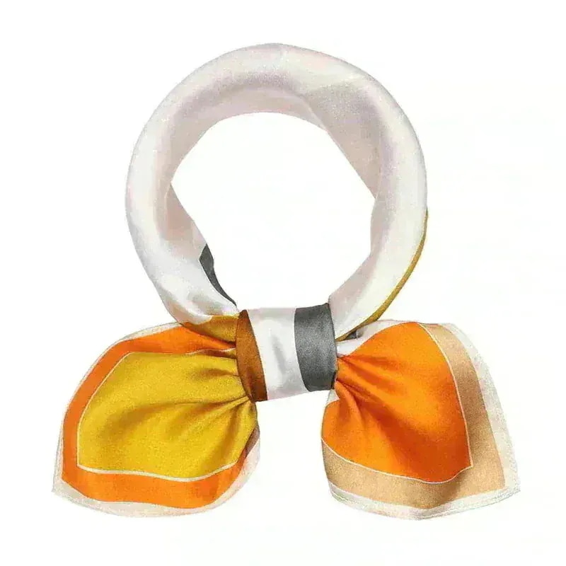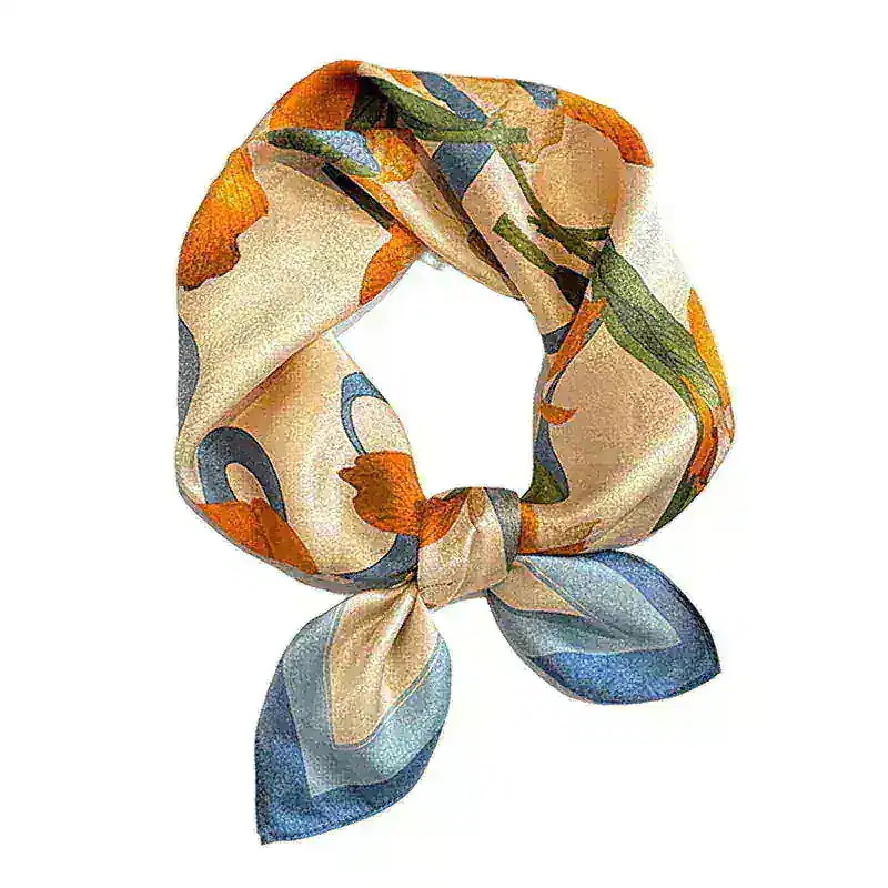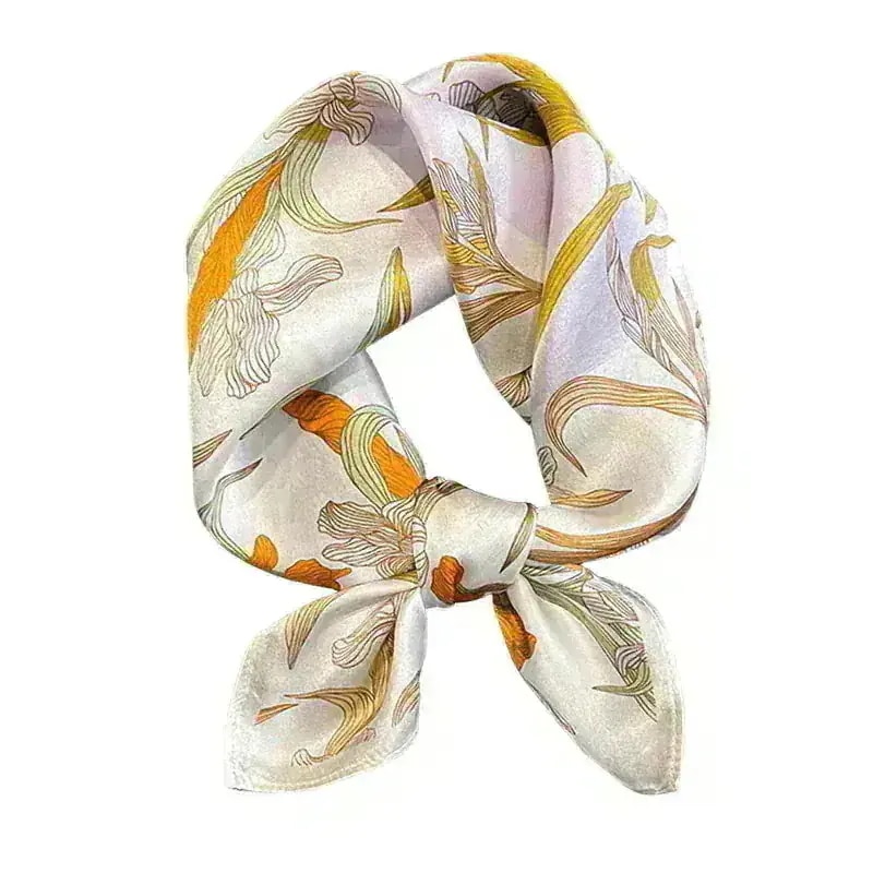 【母の日 贈り物】エレガント シルク100% スクエアスカーフ 53cm イエロー フラワー プリント 春 夏秋 ヘアバンド として 大人気 ネックウォーマー ストール 精美なラッピング