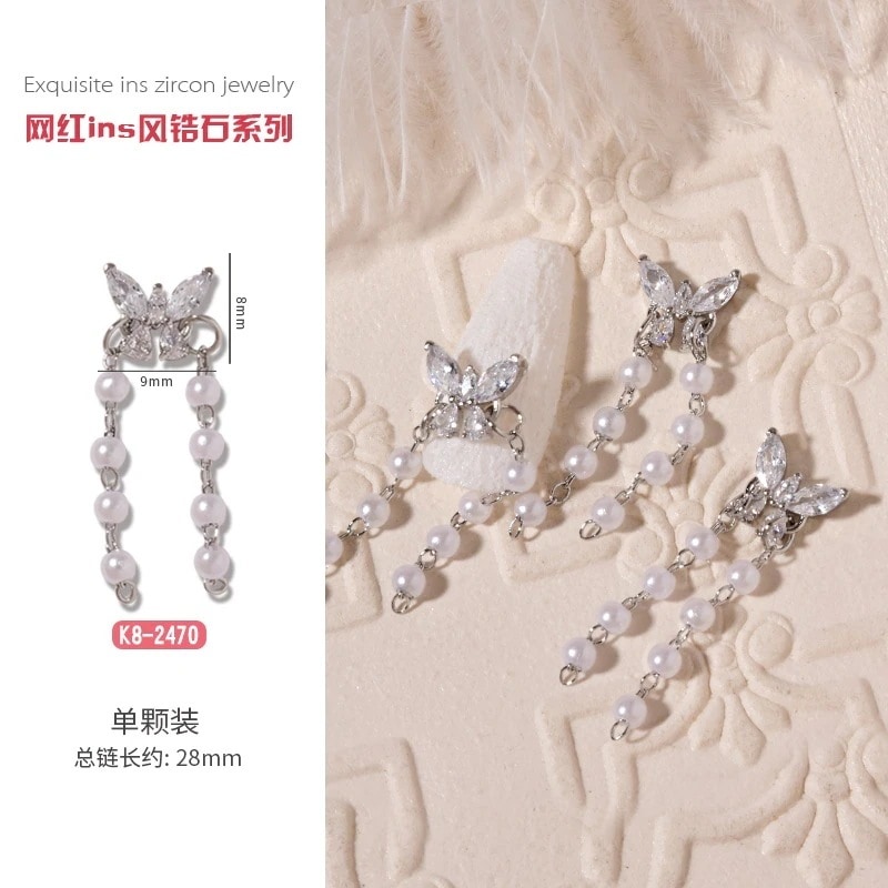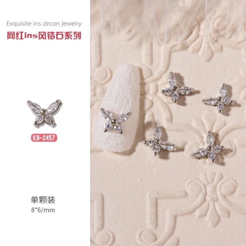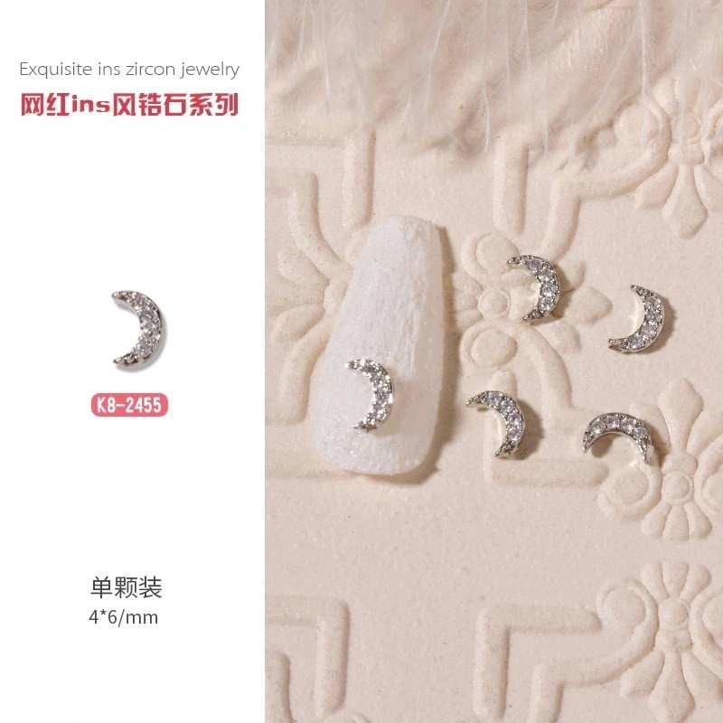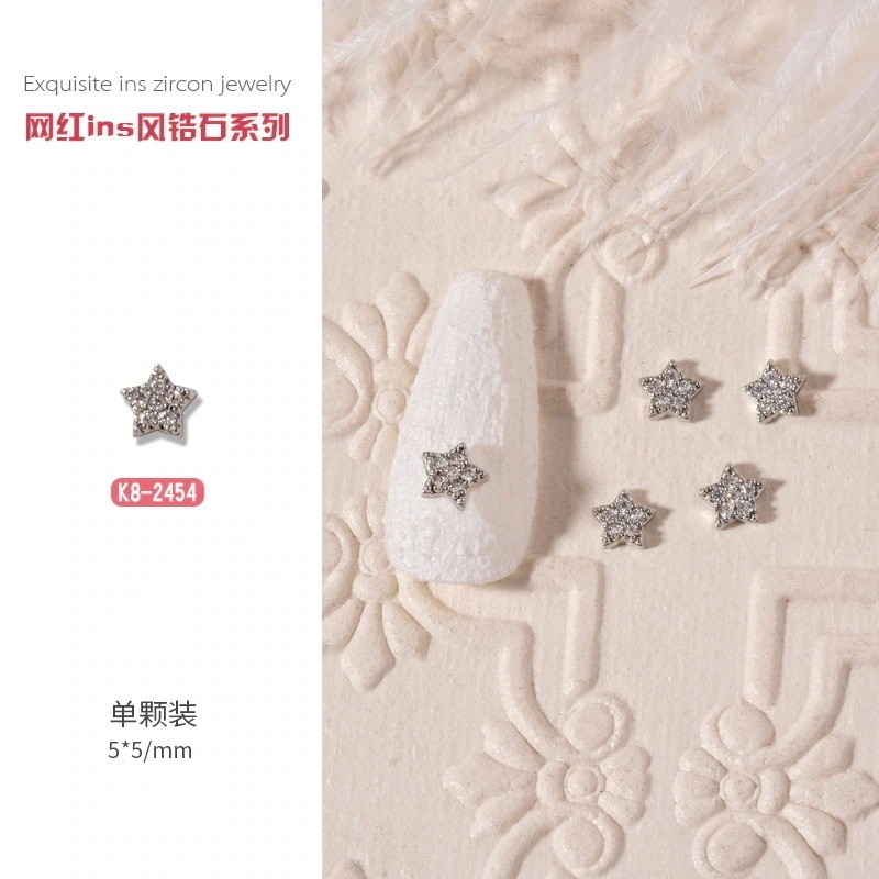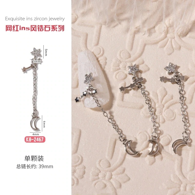Lzネイルアクセサリー銀色の星月ウサギジルコニウム爪飾り小さなハート蝶チェーンダイヤモンド